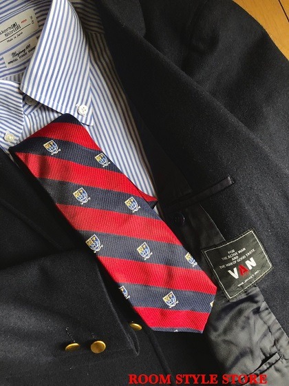 写真は45年前のVAN。3ツボタン段返りでセンタ-フックベント、ダーツのないサックスタイルのブレザーになる。今ならセンチェリー21の制服と間違えられそうだが当時の一番人気といえばネイビーではなくこのキャメル色だったと思う。靴も定番のリーガルビーフロールローファーと思ったが現存していないのでAldenのロングウイングチップを用意、ロイドのミュージックケースで脇を固めた。
