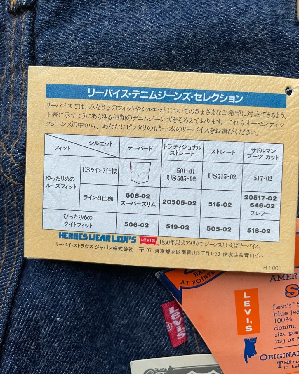 現行とは異なる雰囲気のリーバイス501。サイズ表記やしおりから日本国内で販売されていた商品であることは一目瞭然。購入店もリーバイスの正規販売店なので品質は間違いない。昔からLeeのUSAものばかり買っていた店だが、時折リーバイスの復刻版やエビスジーンズなど面白いものをいち早く教えてくれた店でもある。