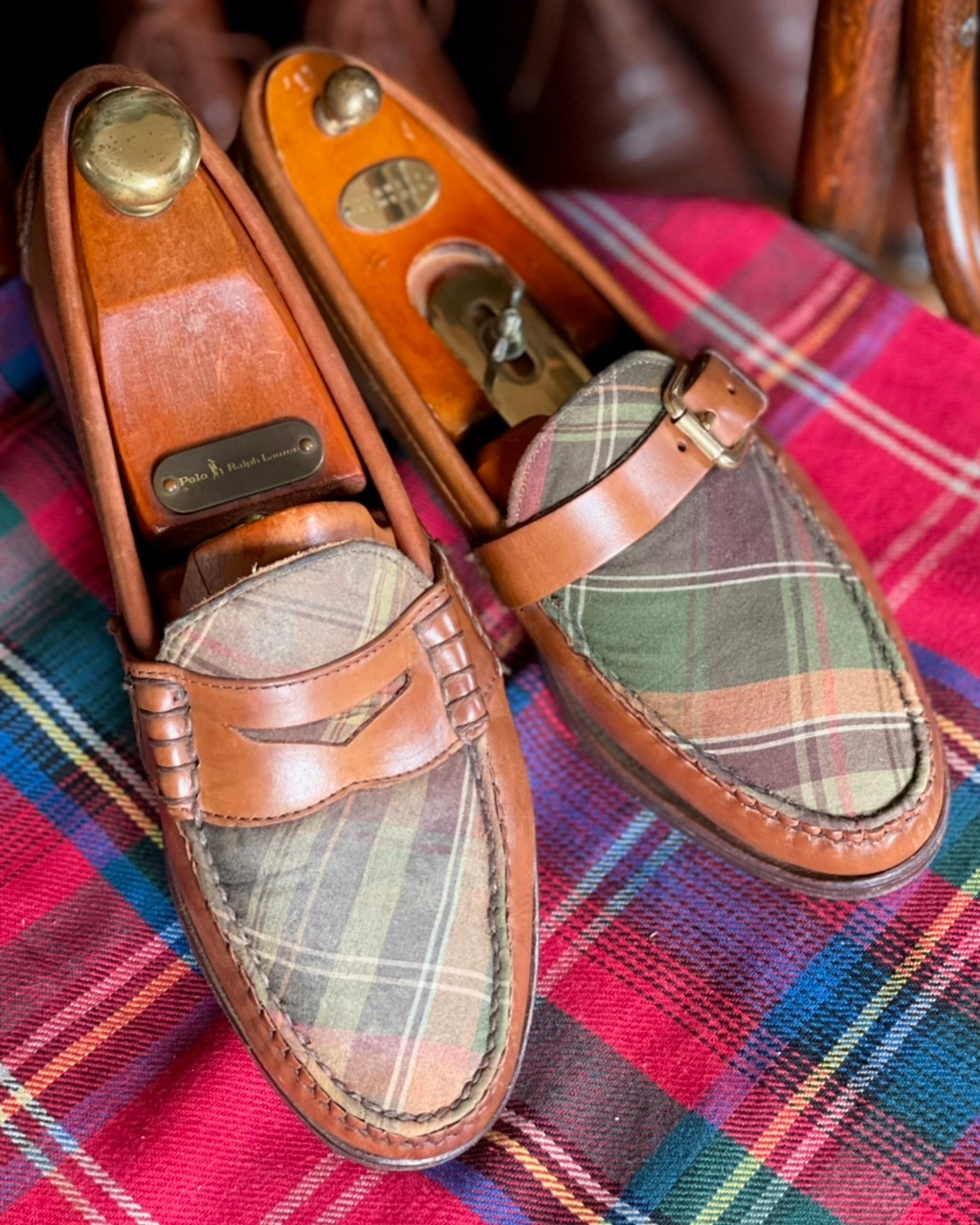 ラルフ別注(左)とラルフ別注のファブリックの余りで作ったMTO(右)。当時のランコートはこんな我儘を受け入れてくれるフレンドリーな会社だった。今はすっかり大きくなってなかなか難しそうだ。そういえばストラップローファーのデザインもディスコンだがいつか機会があったらアリゲーターでオーダーでもしてみたい。