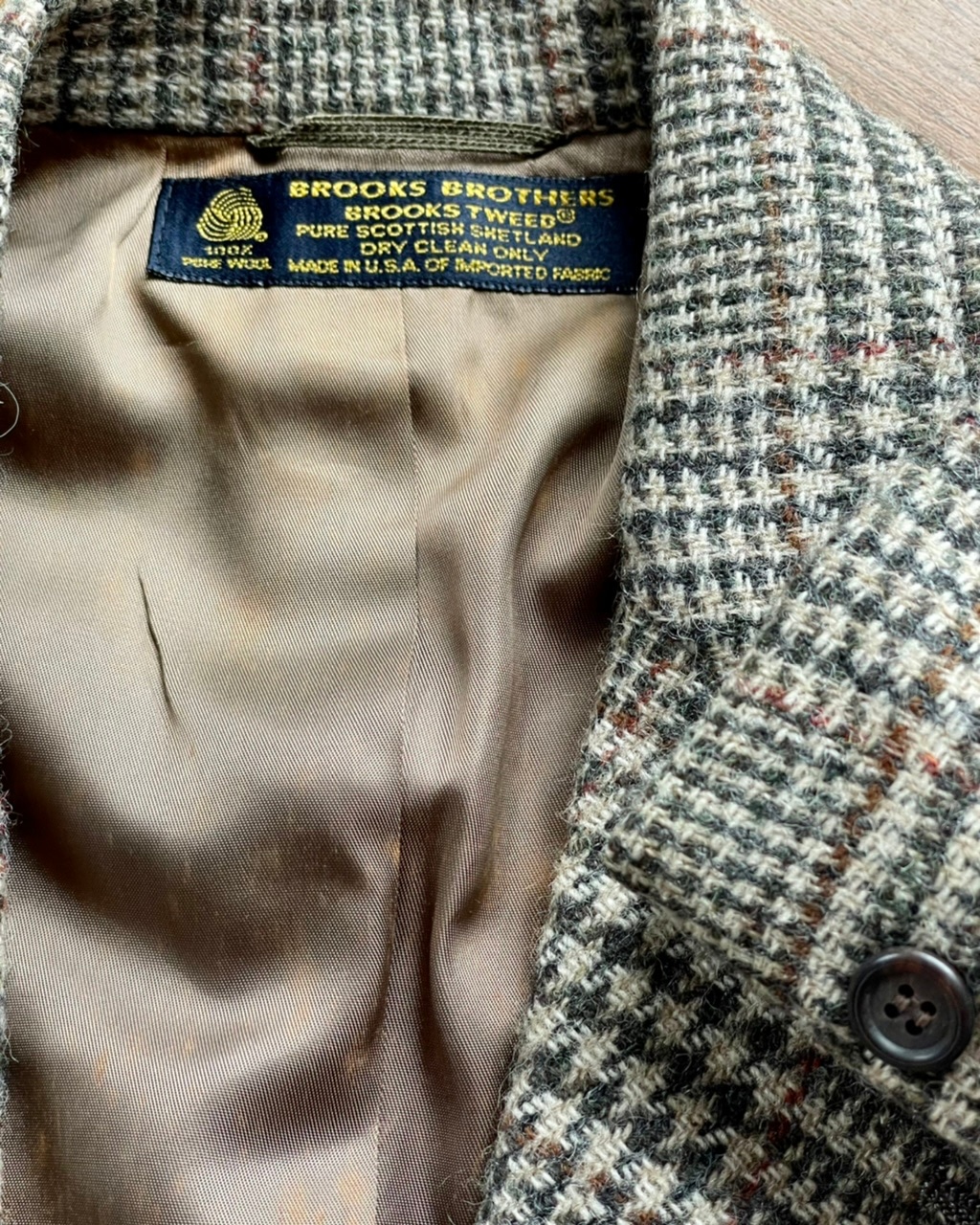 創業者の妻がスコットランド出身ということでスコットランドつながりの多いブルックスブラザーズ。正式なシグネチャータータンを持っていたり専用のツイードを織らせたりしていたのも納得だ。ブルックスツイードと名乗った生地はシェットランド産、ツイードとしては他と比べて軽く暖かいのが特徴らしい。それを生かして軽快なジャケットに仕上げている。