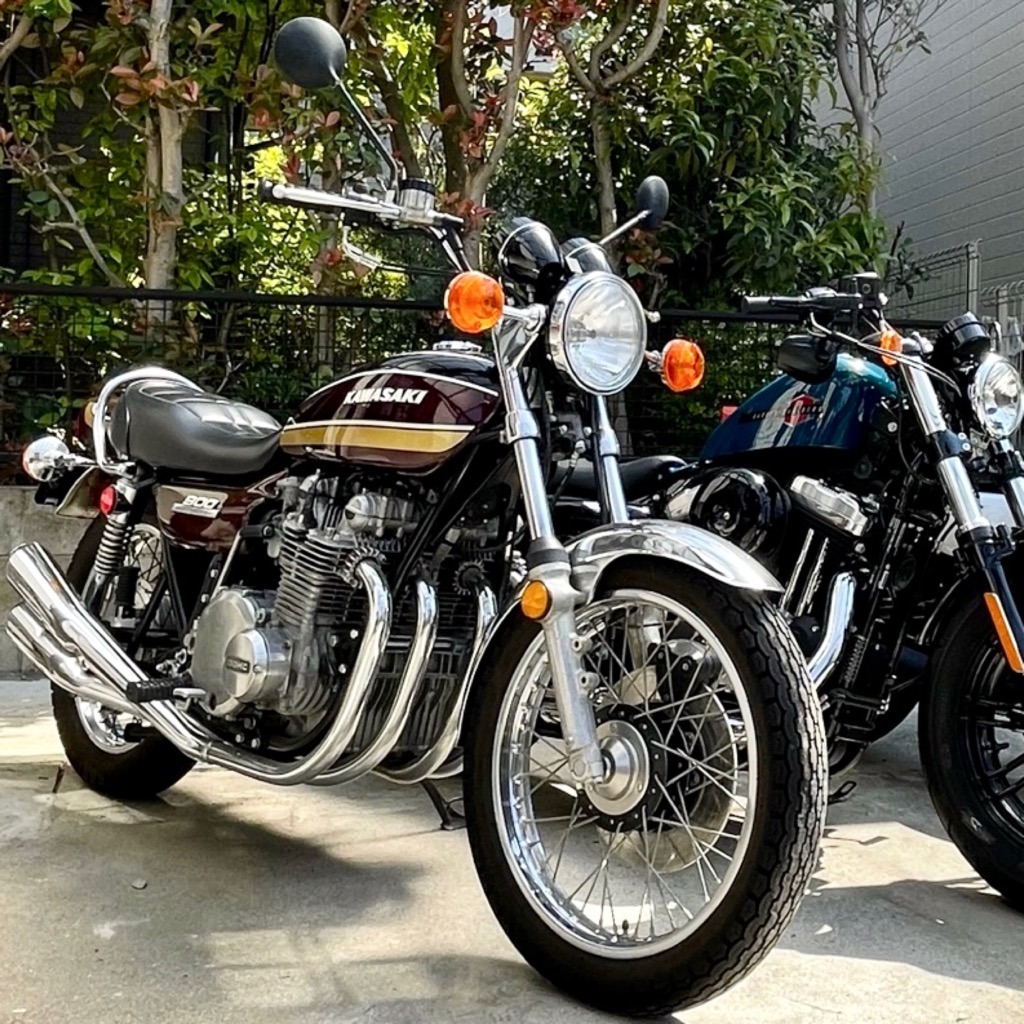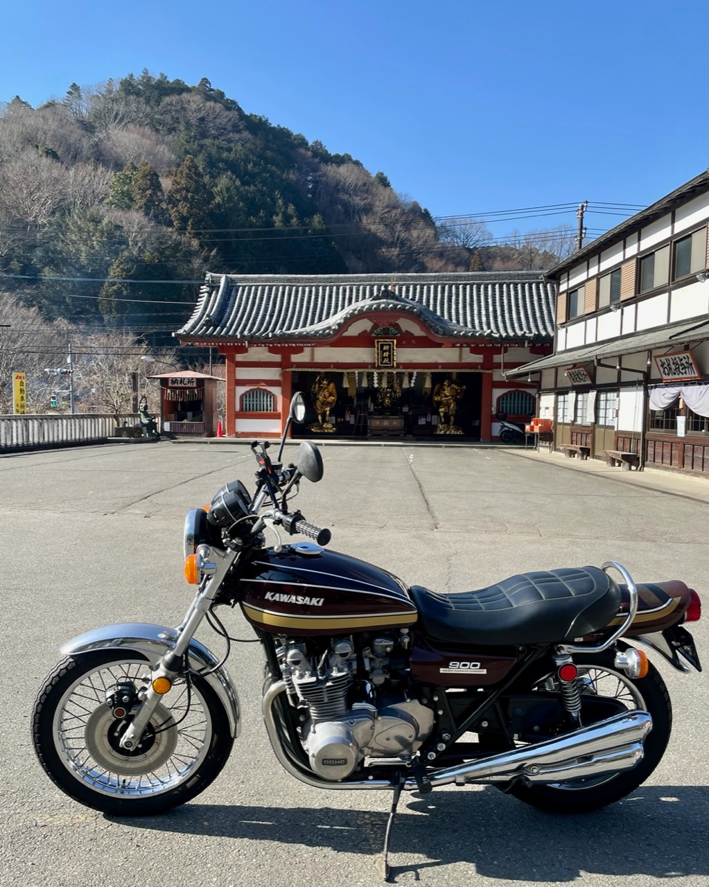 冬はつい乗るのが億劫になりがちだが、バイクに限らず機械は定期的に動かす方が調子を維持できると言われる。エンジンを回さないと内部のオイルが下がって可動部の固着を招くこともあるそうだ。最近のインジェクション装着車はまだしも旧式のキャブレター仕様の場合、例え乗らなくても週に一度はエンジンをかけた方が良いらしい。年末の寒波から一転、暖かな日差しの平日を選んでデイツーリングに出かけた。今回の相棒は1975年式のZ1B、通称茶玉と呼ばれるカワサキの900スーパー4だ。バイク2台を満遍なく乗るのは意外と難しい。隣にあるインジェクション仕様のハーレーを選びがちだが昨年発売から50年の節目を迎えたZ1、新年乗り始めはカワサキと決めていた。