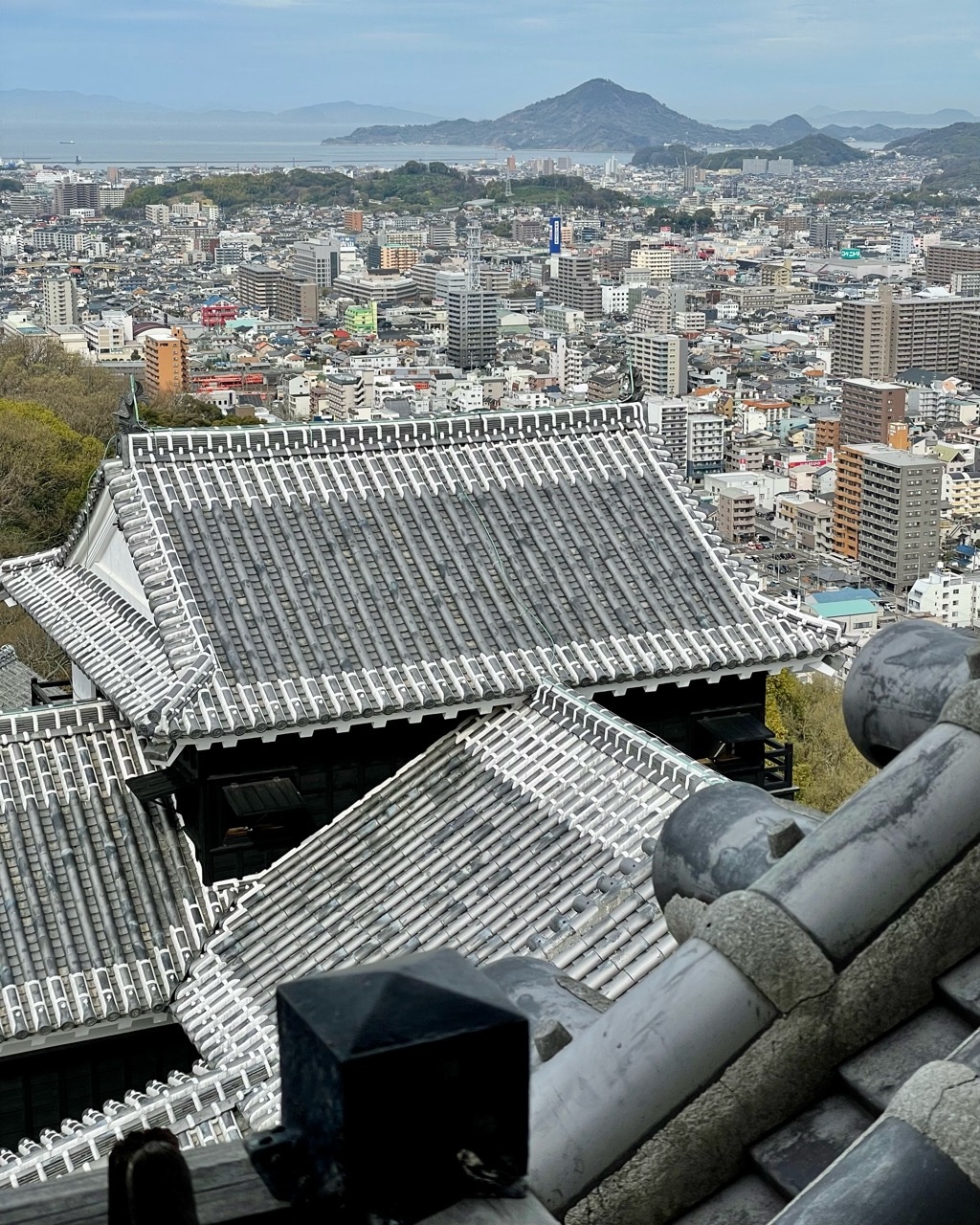 こちらは天守から瀬戸内海を見た様子。次に来るならここ松山市と広島県呉市を最短70分で結ぶ高速船スーパージェットに乗るのも良いししまなみ海道を車で渡るのも悪くない。いやフェリーで3時間弱かけてバイクと一緒に渡るのだって大いにありだ。景色を見ながら知らぬ間にそんなことを考えていた。