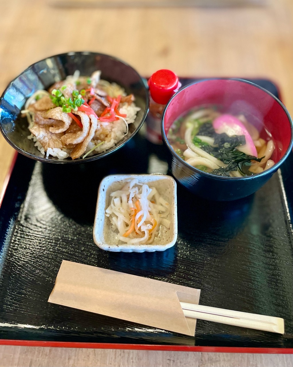 とおわのランチメニューはどれも地元の食材にこだわっている。高知県は生姜の生産量が日本一、しかも四万十市がその中で生産量1位だとか。地元の生姜で味付けした四万十ポークを味わう幸せよ。因みに写真のうどんも地元の毛利製麺を使用しており出汁も讃岐のイリコに対して高知はカツオ…と違いは明確だ。