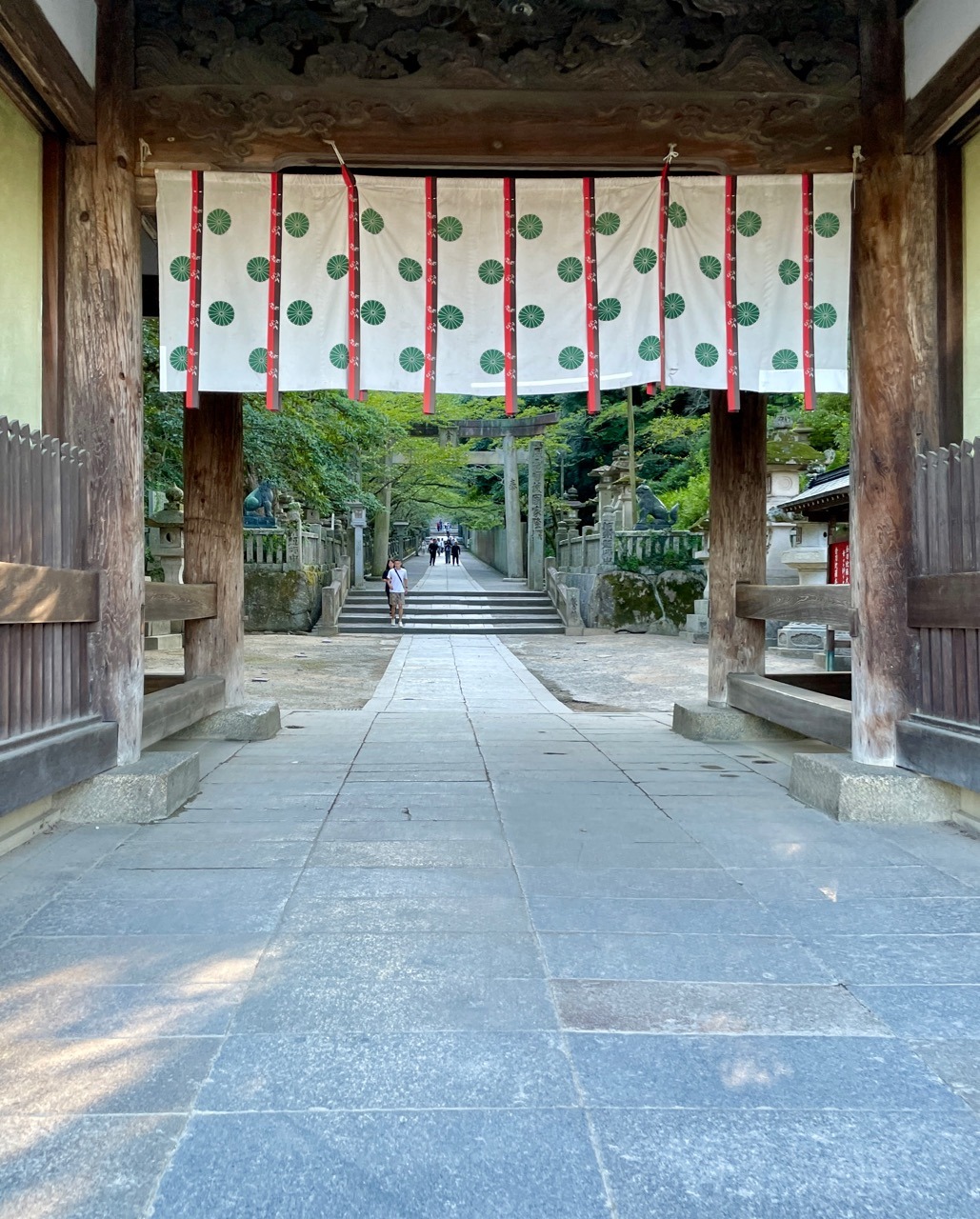 ところが徐々に階段数が増え角度も急になってきた。日中だったら暑くてバテてしまうだろう。日暮れ時に来て大正解だったが人の気配がなさすぎる。静まりかえった参道はなんだかスピリチュアルな雰囲気もただよう。映画「千と千尋の神隠し」を思い出した。眼下には琴平町と讃岐平野が見えている。
