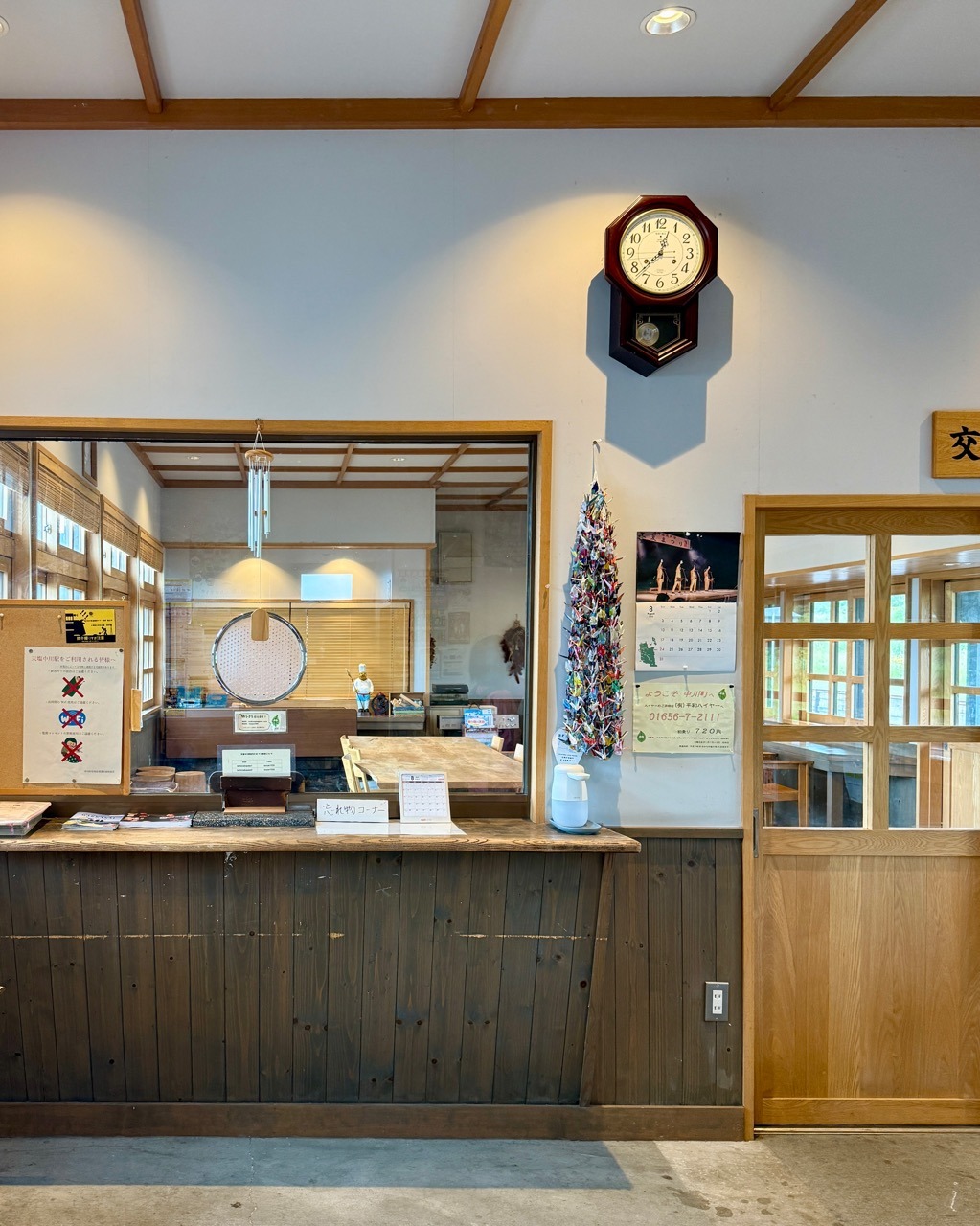 駅の事務室は交流室に生まれ変わり大きな机といすが並んでいた。月に数日はカフェも出店するらしい。なるほどカウンターが設置されているのも頷ける。時刻は間も無く午後1時、雨も止んだのでレインウェア仕舞い日本海へ向かう。お世話になったお礼にと少し早いが中川町のGSで満タンにした。