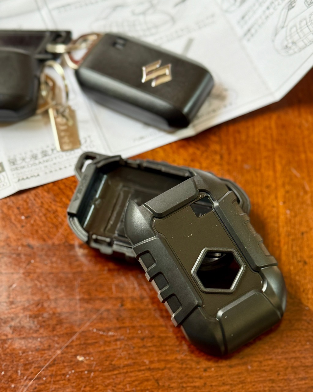 まずはキーカバー。2つあるスマートキーは「満遍なく使う」のがお薦めらしい。交互に使うことで電池切れの時期を分散できる上にスペアが必要な際「使えない」事態を防げるからだとか。数ヶ月毎にメインを入れ替えるのが理想らしいのでまずは外見から変えてみた。