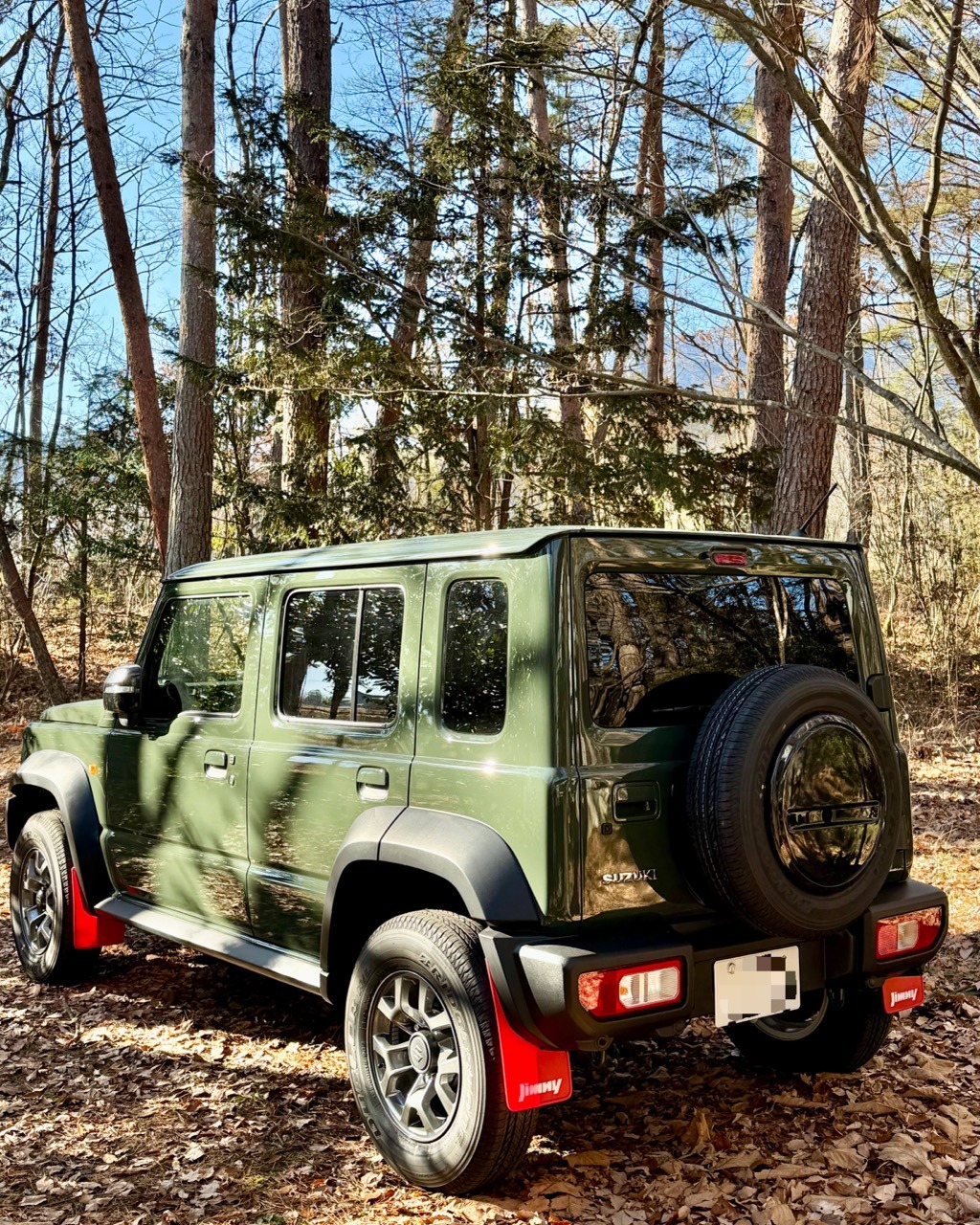 一方のホイールはレイズのグラムライツリミテッド。ボディカラーと同色のジャングルグリーンで限定仕様に惹かれて結局「タイヤ+ホイール」4本セットで購入してしまった。目下オープンカントリーは欠品中、2026年製産分は2月頃到着とのことで装着は3月頃になりそうだ。