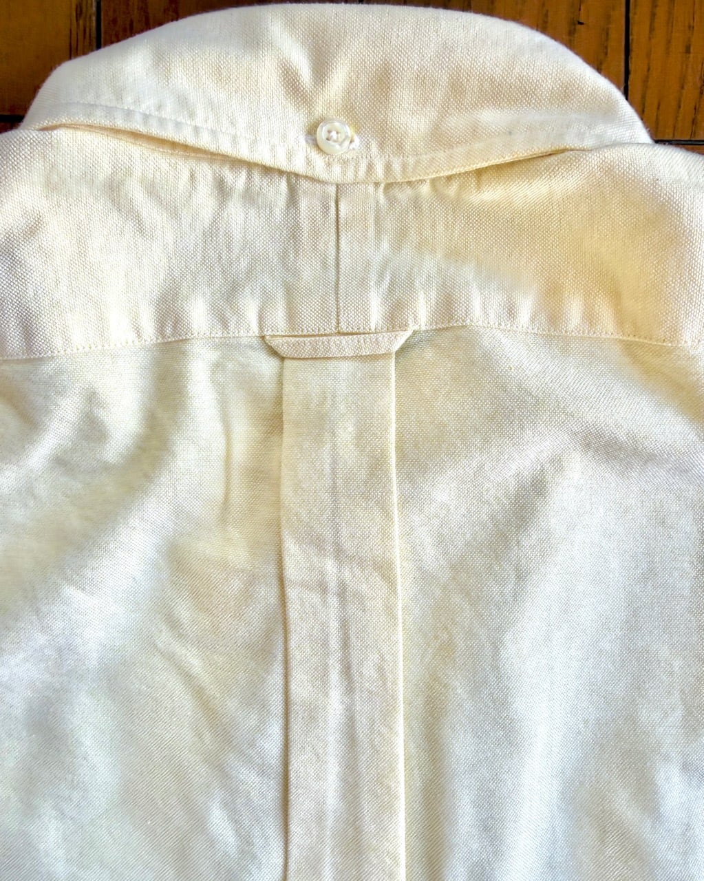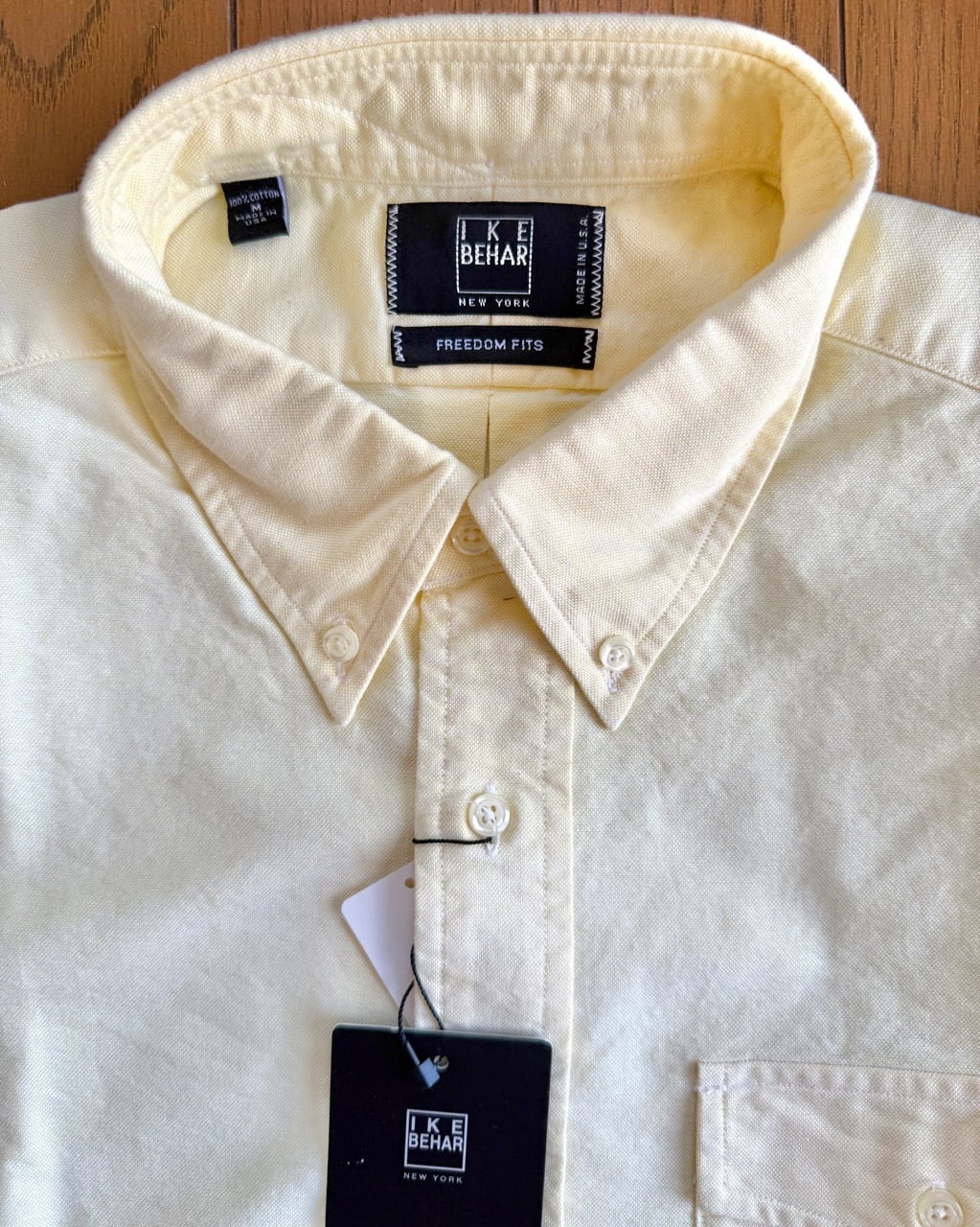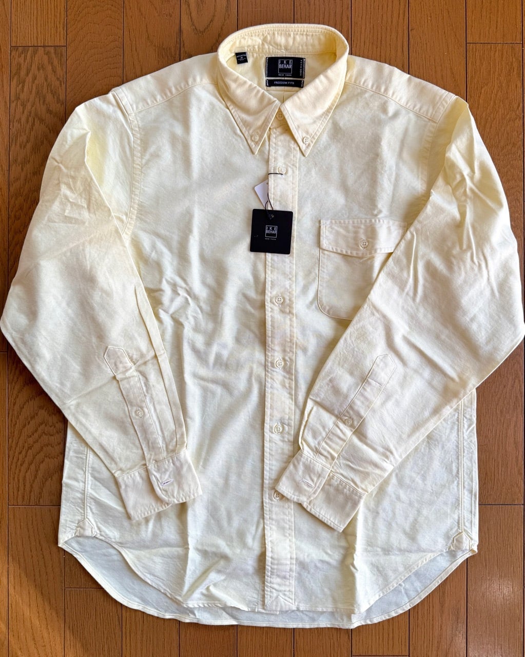 既にアメリカ国内の工場をクローズしたと言われるアイクベーハーの米国自社工場製、デッド品のOCBD(オックスフォードクロスボタンダウン)シャツの紹介です。1980年代にラルフローレンのシャツを請け負っていたのは有名な話ですがその流れを汲むショートポイント気味の襟がアイクベーハーらしさを表しています。襟後ろのボタンやロッカーループにボタンフラップ付のチェストポケットなど日本のアイビーファッションがこだわるディテールが全て盛り込まれています。スプリットヨークやガウントレットボタンに裾両脇のサイドガセットなど本格的な作りのBDシャツはスウェットの下にカジュアルに着ても良し、ブレザーと組み合わせてプレッピーな装いに振っても良しの万能な一枚です。