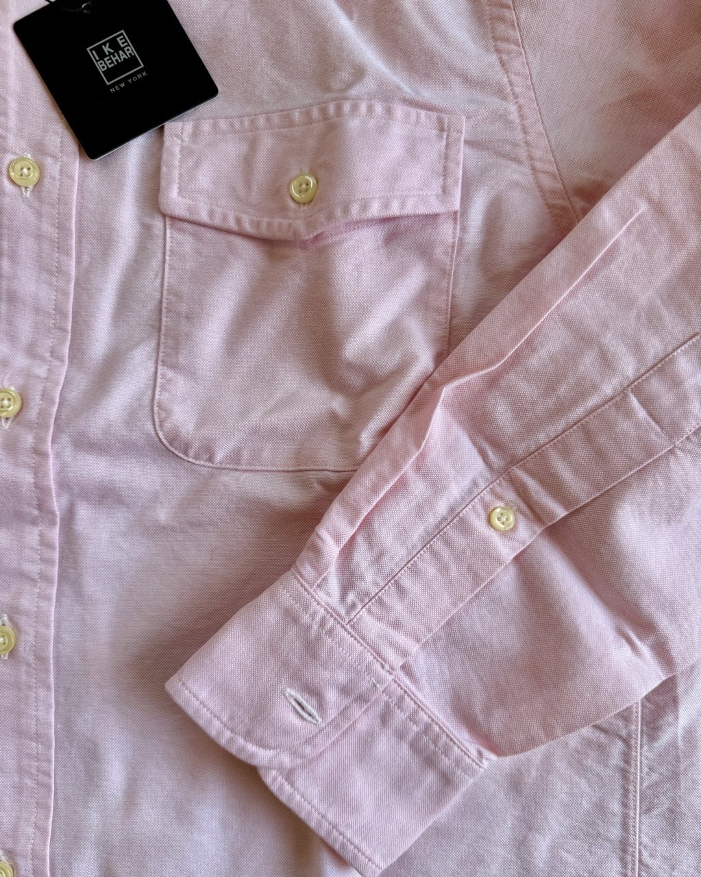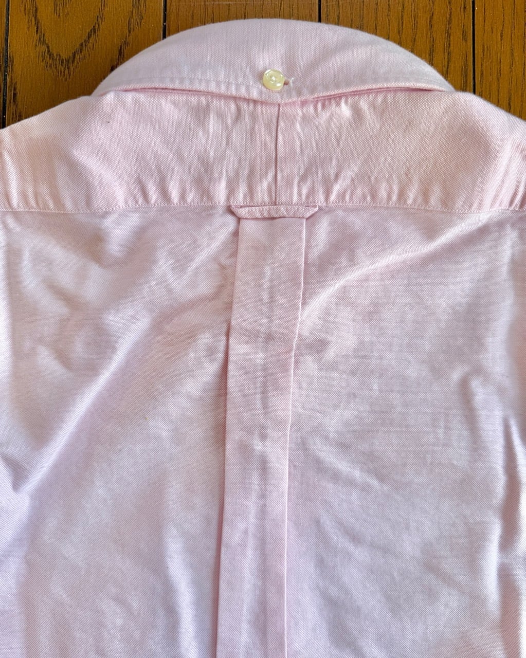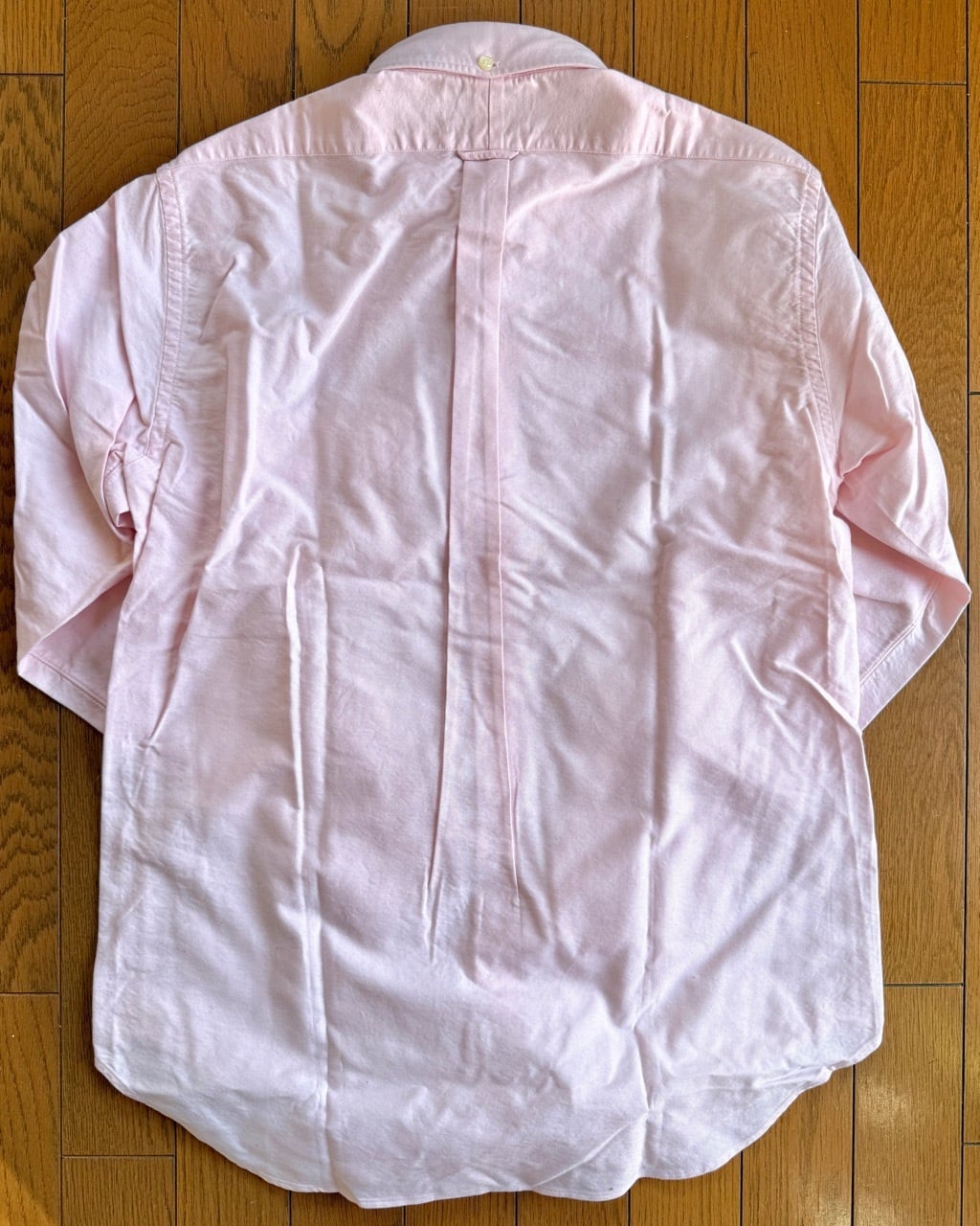 既にアメリカ国内の工場をクローズしたと言われるアイクベーハーの米国自社工場製、デッド品のOCBD(オックスフォードクロスボタンダウン)シャツの紹介です。1980年代にラルフローレンのシャツを請け負っていたのは有名な話ですがその流れを汲むショートポイント気味の襟がアイクベーハーらしさを表しています。襟後ろのボタンやロッカーループにボタンフラップ付のチェストポケットなど日本のアイビーファッションがこだわるディテールが全て盛り込まれています。スプリットヨークやガウントレットボタンに裾両脇のサイドガセットなど本格的な作りのBDシャツはスウェットの下にカジュアルに着ても良し、ブレザーと組み合わせてプレッピーな装いに振っても良しの万能な一枚です。