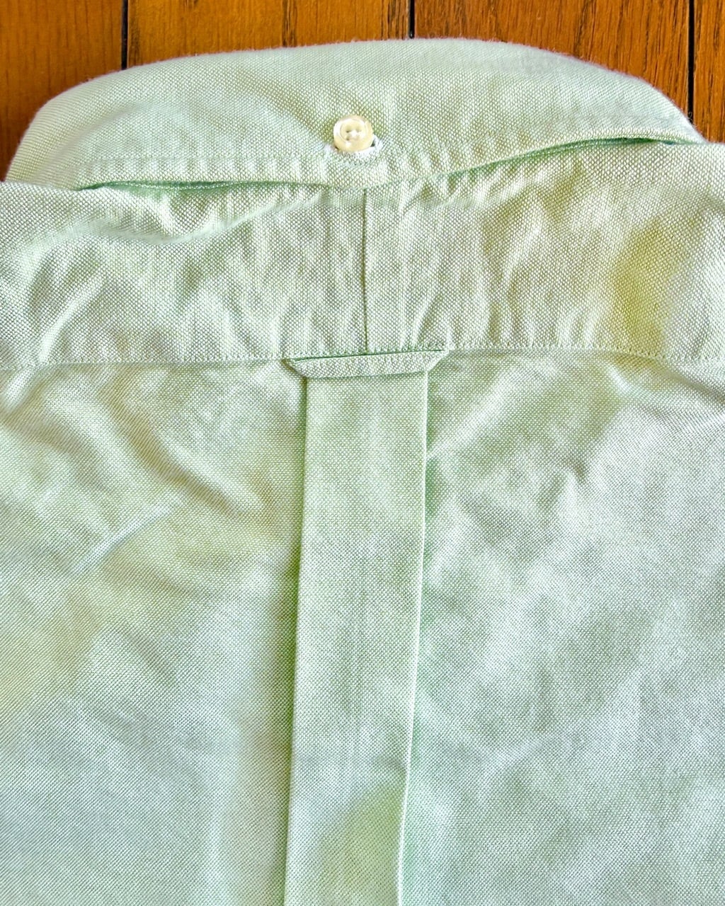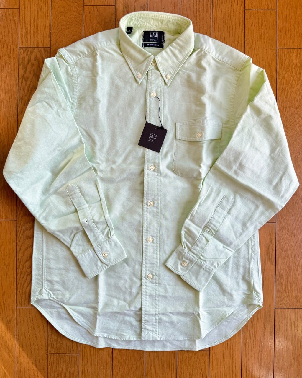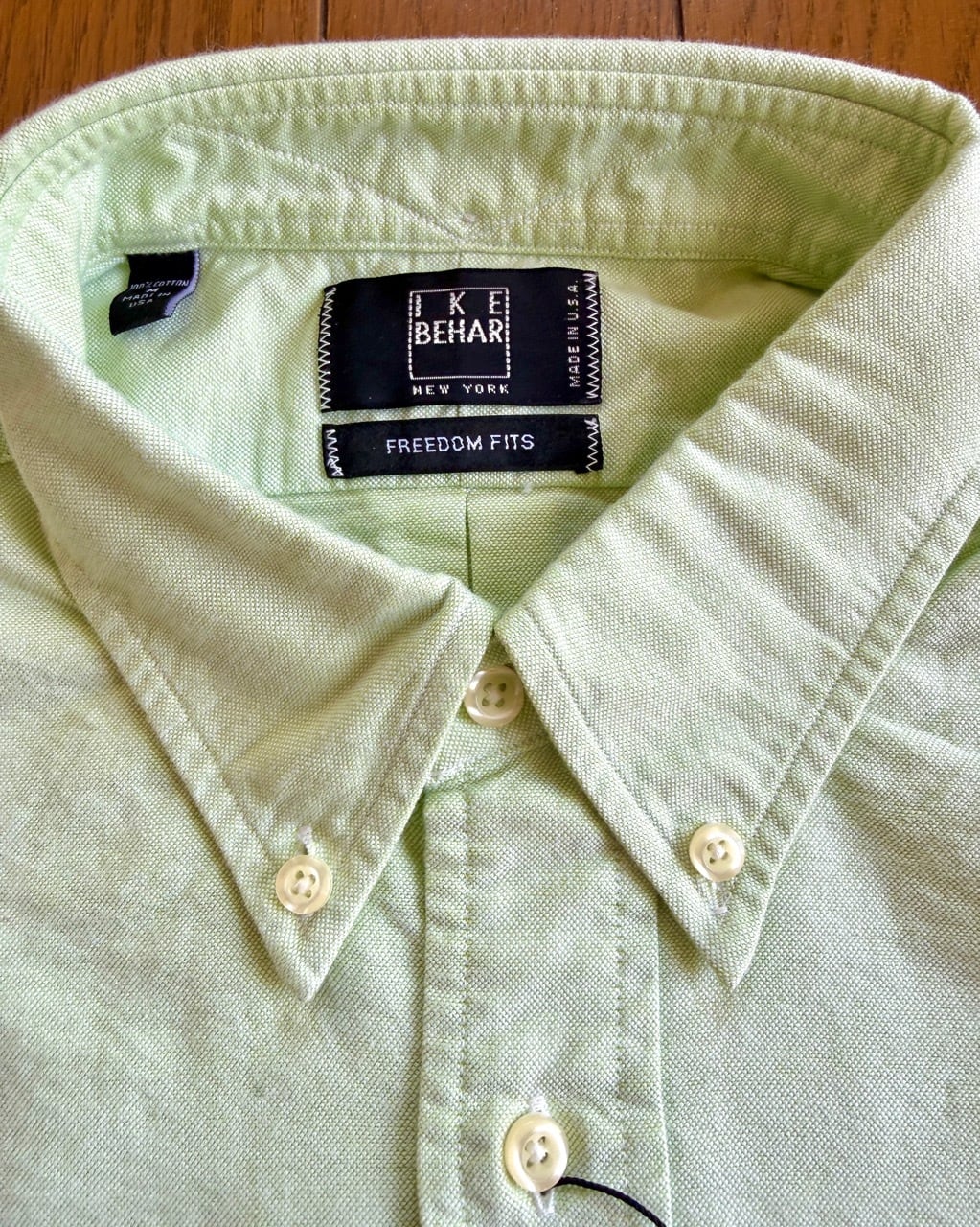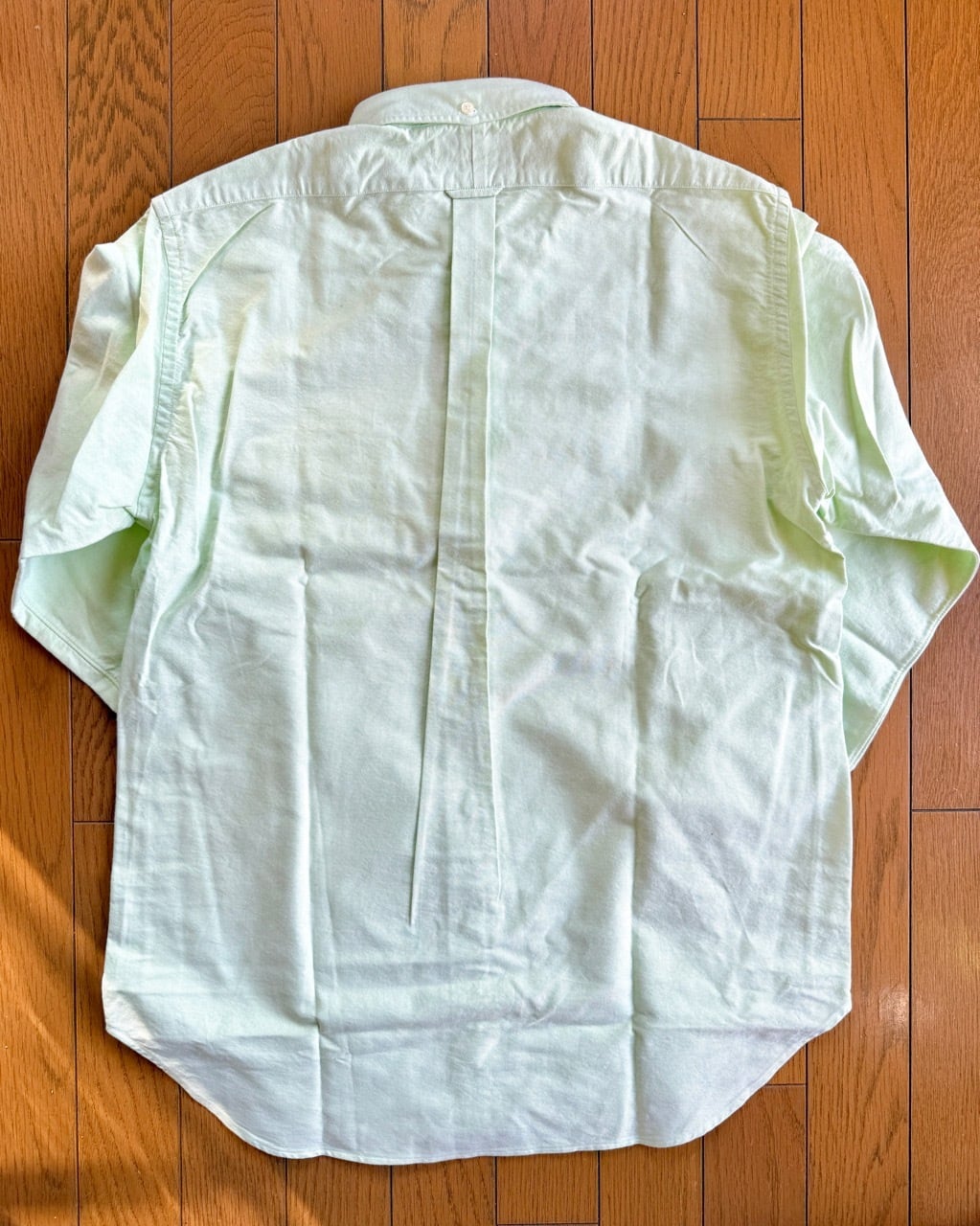 既にアメリカ国内の工場をクローズしたと言われるアイクベーハーの米国自社工場製、デッド品のOCBD(オックスフォードクロスボタンダウン)シャツの紹介です。1980年代にラルフローレンのシャツを請け負っていたのは有名な話ですがその流れを汲むショートポイント気味の襟がアイクベーハーらしさを表しています。襟後ろのボタンやロッカーループにボタンフラップ付のチェストポケットなど日本のアイビーファッションがこだわるディテールが全て盛り込まれています。スプリットヨークやガウントレットボタンに裾両脇のサイドガセットなど本格的な作りのBDシャツはスウェットの下にカジュアルに着ても良し、ブレザーと組み合わせてプレッピーな装いに振っても良しの万能な一枚です。