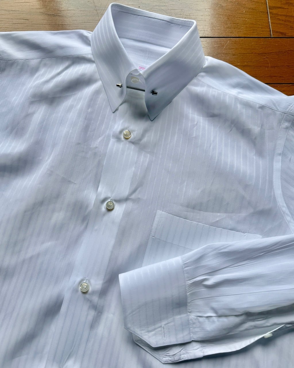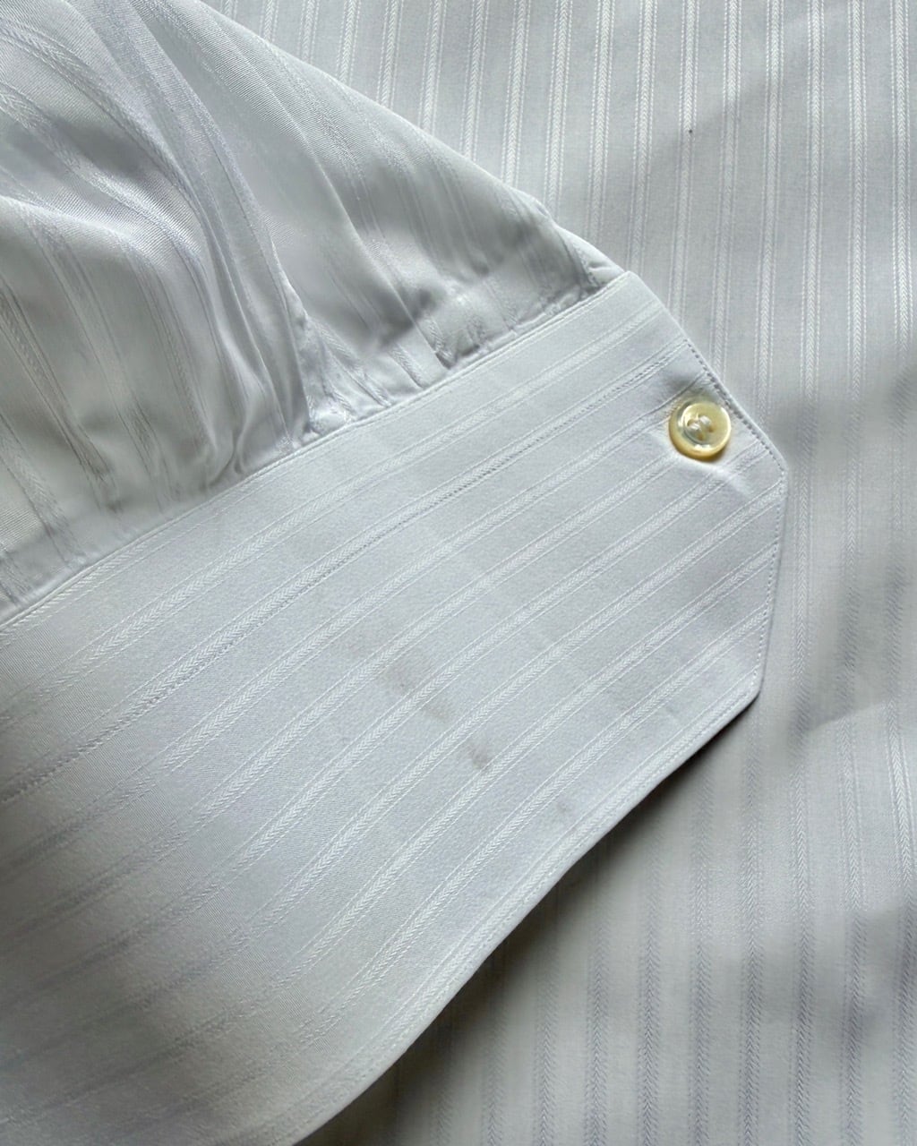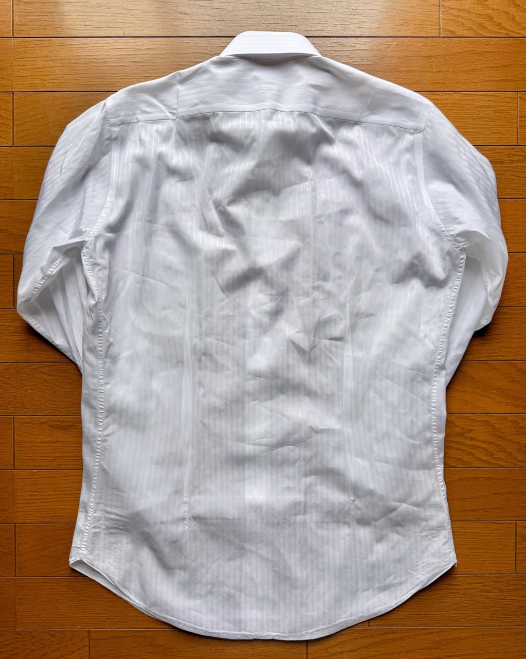 ※シャツ右袖のカフ表側(写真8枚目)にうすく汚れが残っているので価格を下げています。