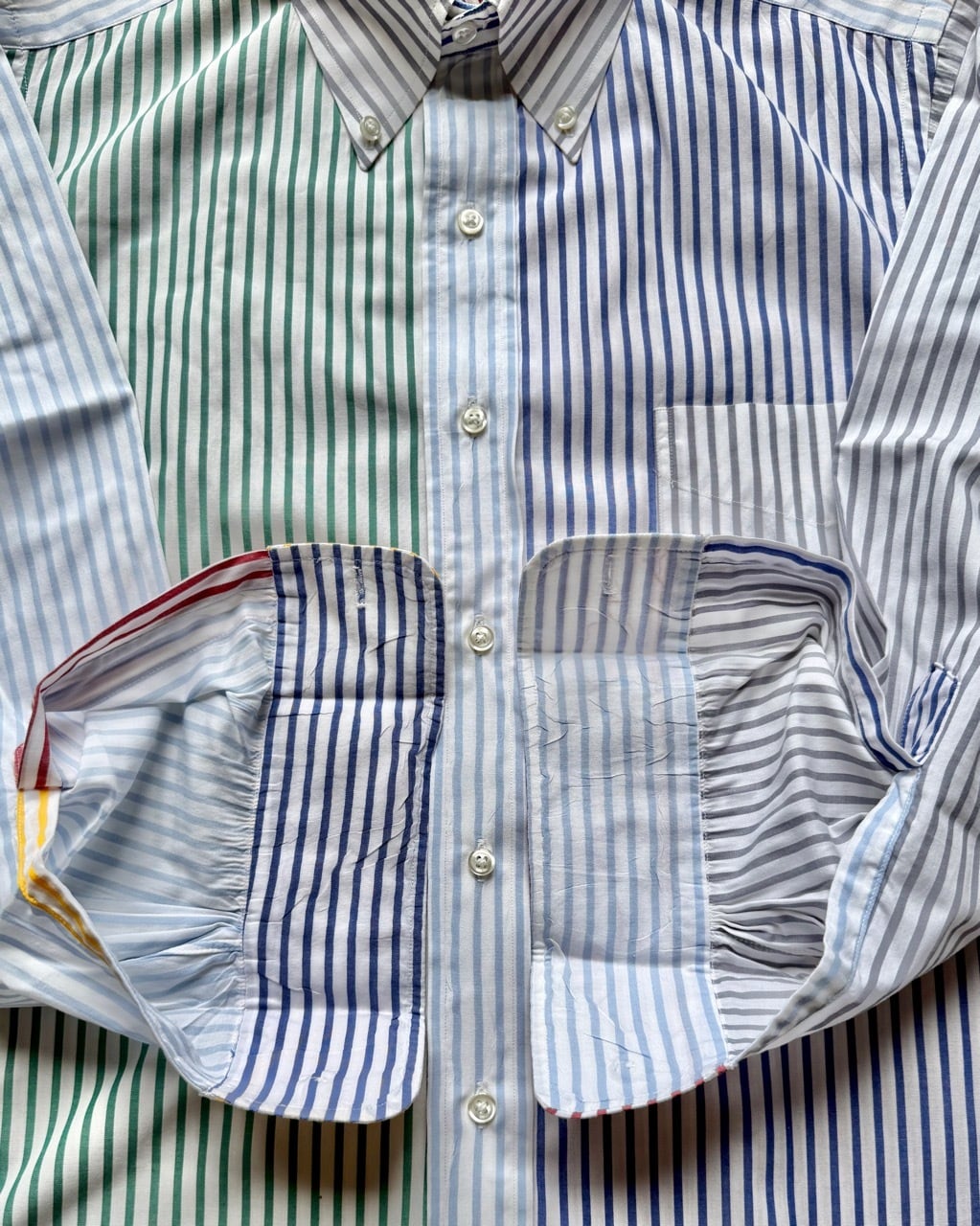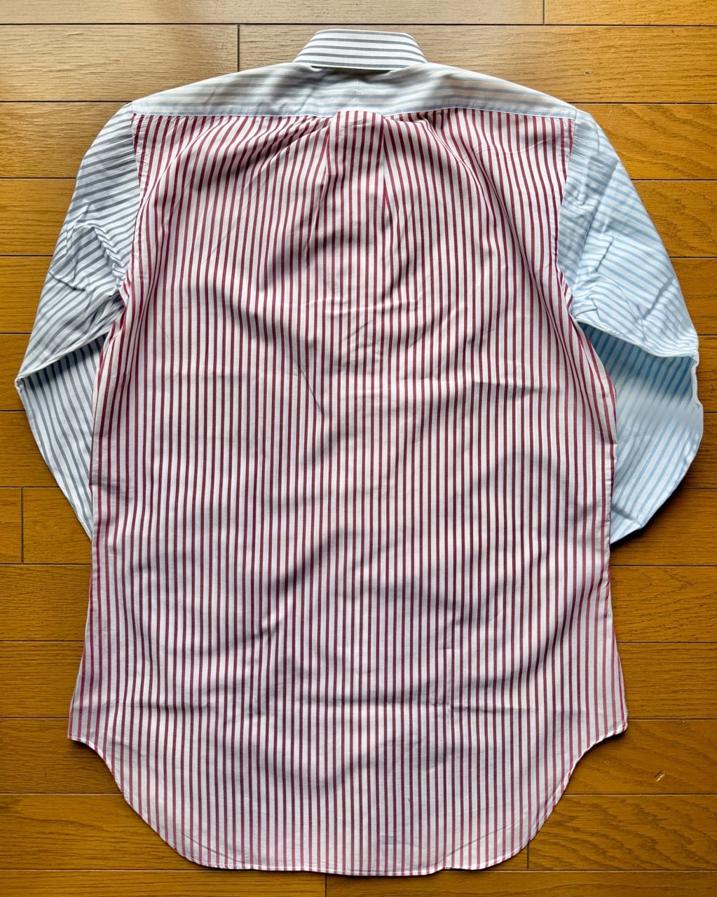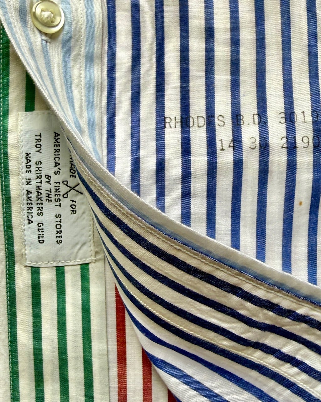 今はなきアメリカの名門シャツメーカートロイのクレイジーストライプシャツの紹介です。ブルックスブラザーズと並んでアイビールックの定番、J.プレスのオックスフォードBDシャツを長年作りづけてきたトロイでしたがギットマンと同じくインディビジュアライズドアパレルグループの傘下に入りブランドは消滅いたしました。タグは日本の服飾ブランドの草分け的存在の三峰が展開していたアイビーリーガーズクラブ、1990年代日本で購入したもので既にビンテージの域に達しているBDシャツです。サイズタグは14/30とあり本来はボーイズサイズと思われますがレティスを想定して販売されたもの、同じメンズの15½-32とペアで着る楽しみがあります。