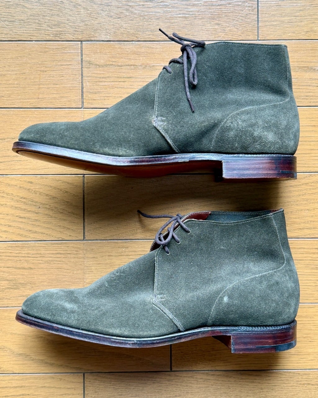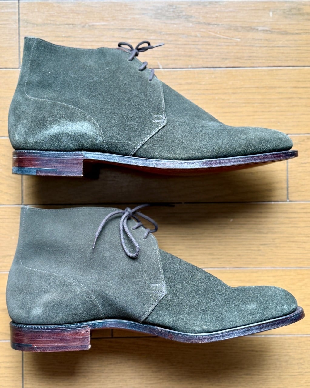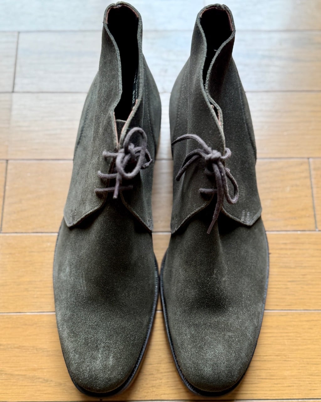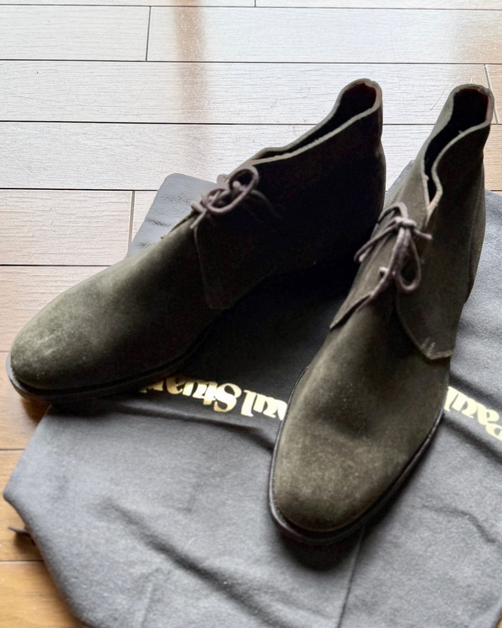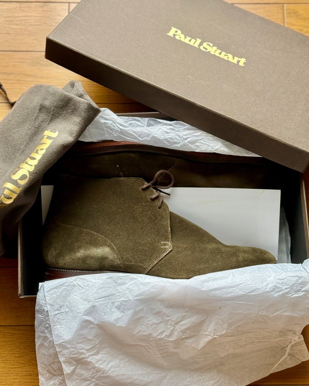 ポールスチュアート別注クロケットジョーンズ製チャッカブーツの紹介です。モデル名はその名もずばりCHUKKA(チャッカ)。アンラインドのアッパーに細身のDウィズが特徴、アーチのくびれた内ぶりのラストが快適な履き心地を提供します。アッパーは別注色のハンターグリーン。ツイードジャケットに細身のモールスキントラウザーズなど英国のカントリースタイルにピッタリのアンクルブーツです。
