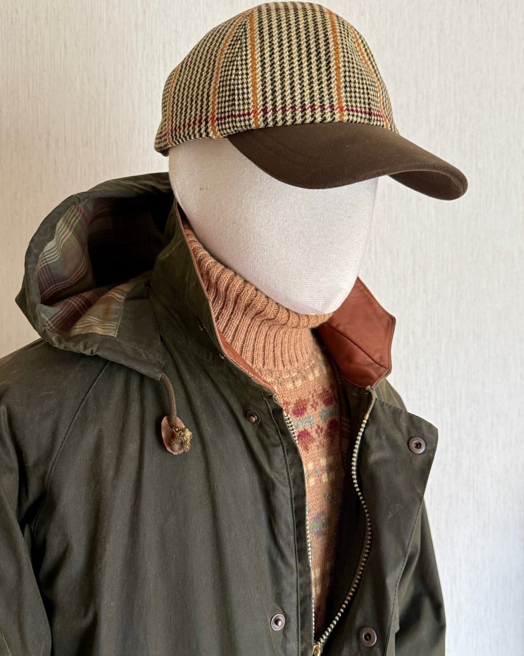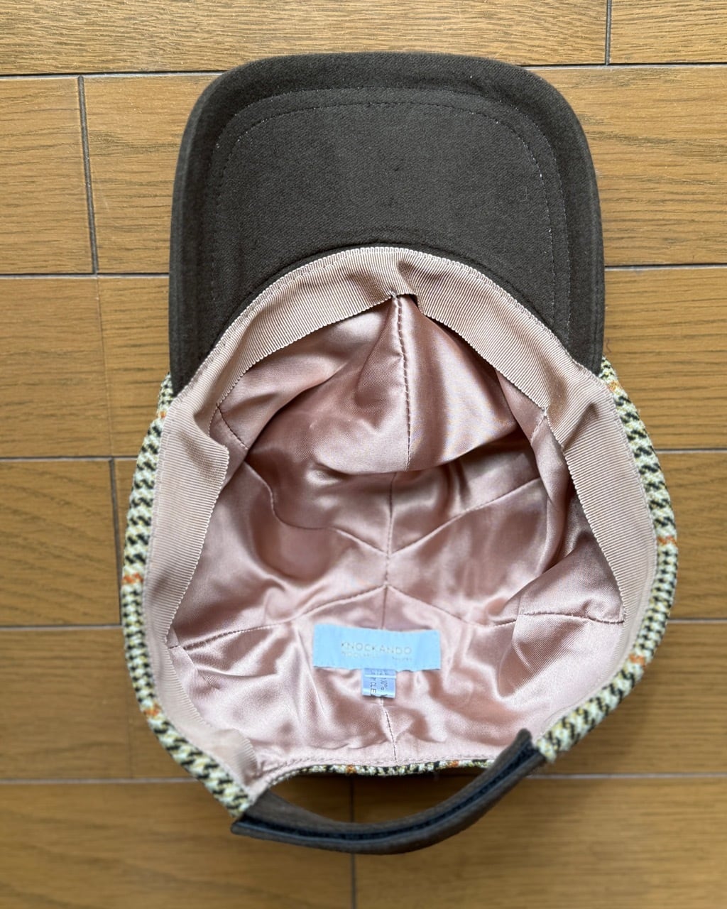 こちらはスコットランド最古のツイードミルであるノッカンドゥで織られたツイード生地を使いノッカンドゥミル直売ショップで買い付けた商品になります。キャップ部分は代表的なラッセルツイードを用いておりライニングが張られています。またツバとキャップ後ろのサイズ調節用ストラップはアルカンタラを使用したもの。日本味入荷、一点ものの秋冬用キャップです。