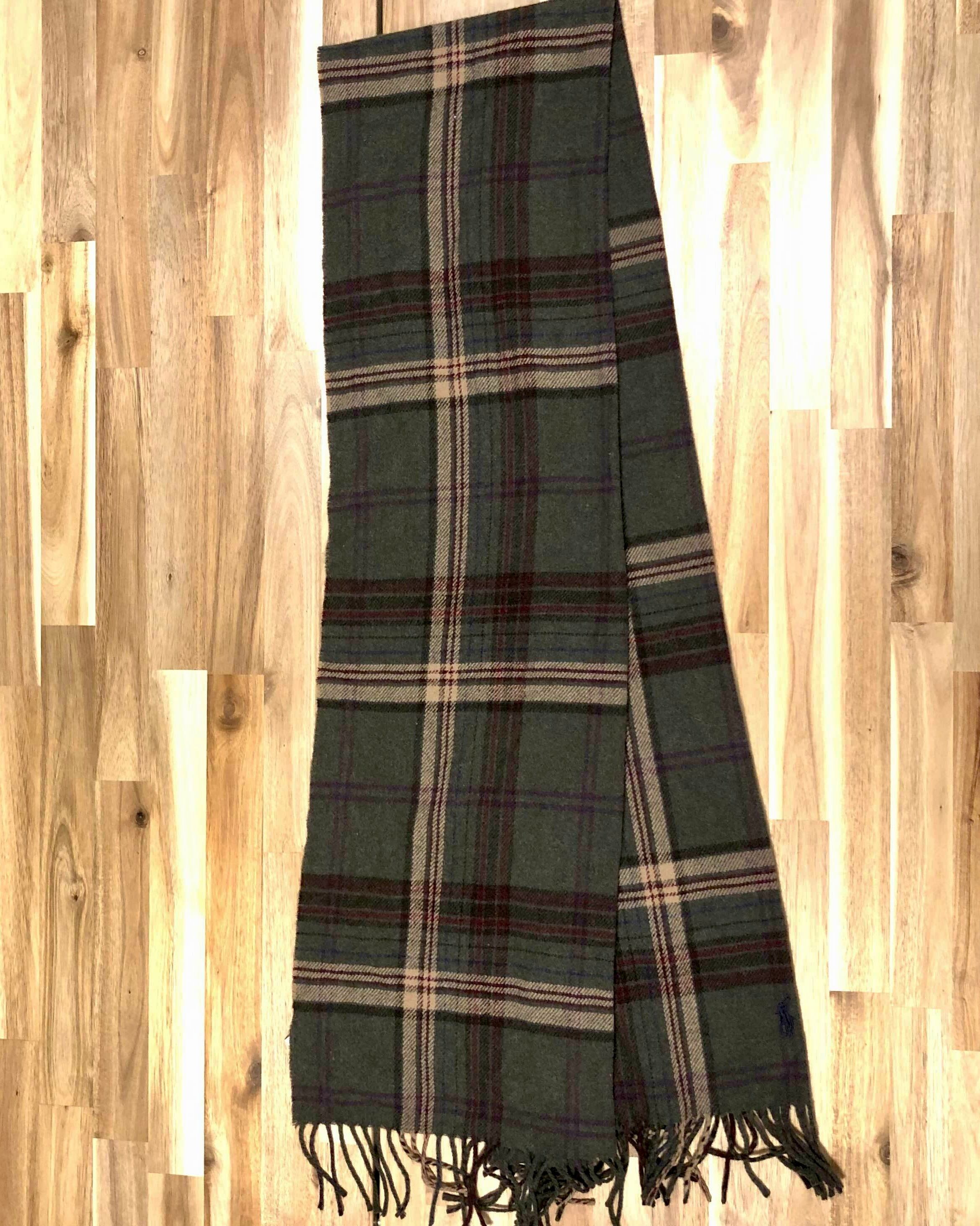 ポロ ラルフローレン ウールマフラー 【状態】新品 【素材】ウール100% 【色】緑/茶/赤 チェック 【表記サイズ】189cm x 50cm 【製造】イタリー製 【商品説明】 ポロ ラルフローレンのウール100%のマフラーが入荷しました。スコットランドの景色を思わせる色使いはツィードジャケットとの相性もよく、女性も身に着けられる使い勝手の良さが光ります。 写真もでわかるとおり大判ですので、首下の暖かさは抜群、ボリュウムのある巻き方のバリエーションを楽しめると思います。