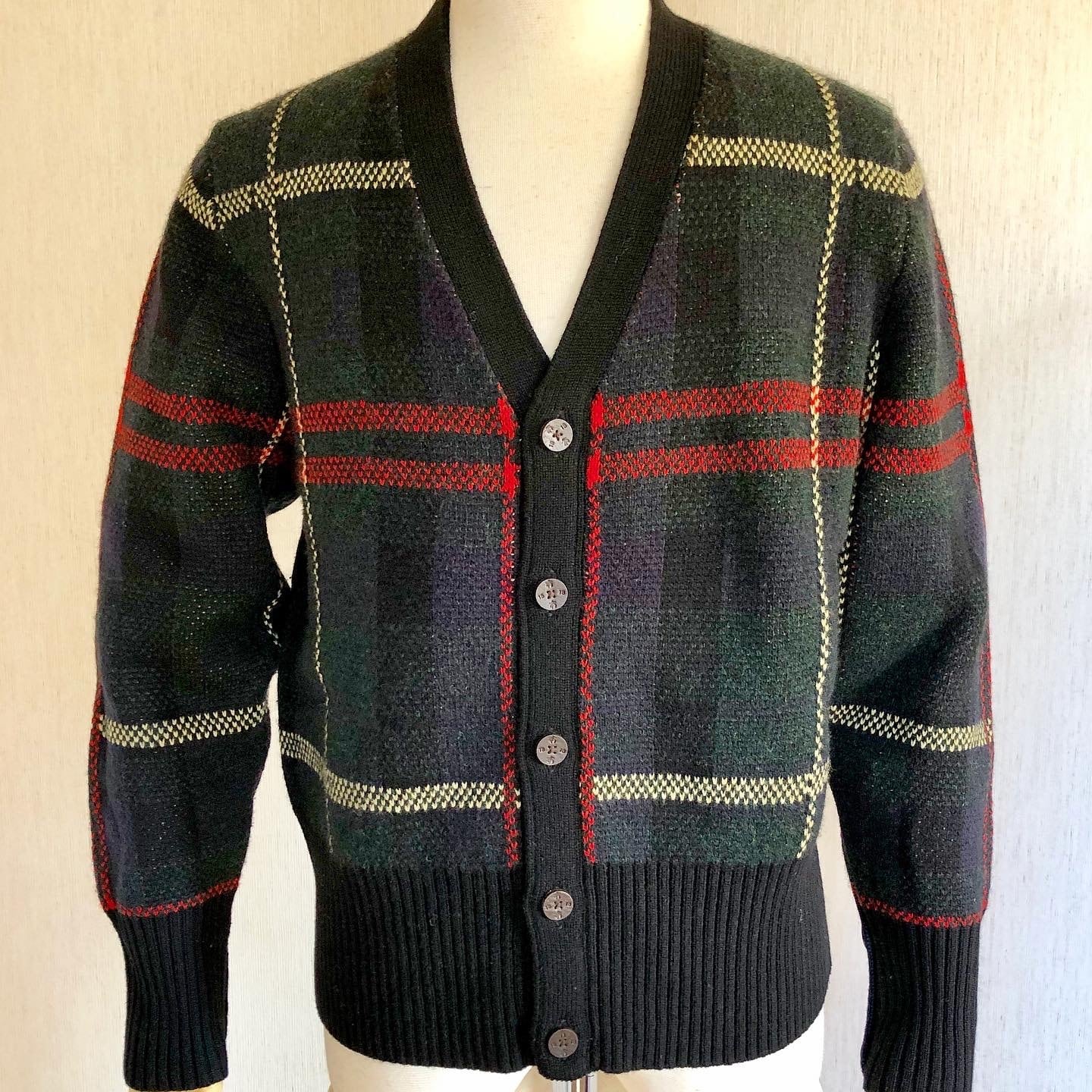 【状態】新古品 【素材】ウール100% 【色】タータンチェック 【表記サイズ】サイズBB02 【製造】中国 【寸法】肩幅:47/着丈:62/身幅:54/袖丈:86(cm) ブラックフリースからカーディガンの紹介です。ウールニットに革製ボタンの前立てや袖の本開きなどトムブラウンらしいデザインが各所に盛り込まれています。身頃後ろのロッカーループやボタン留めのポケットなど他にはないディテールは単調になりがちなカーディガンにインパクトを与えています。