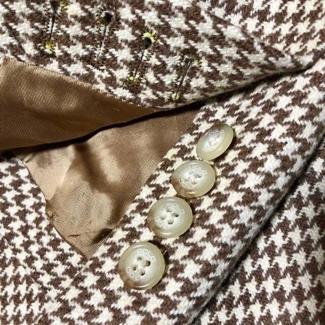 ポロゴルフのイタリア製クラブハウスジャケットが入荷しました。スロートタブの付いた上襟は裏地がスエードの凝った作り、袖のボタンも全て開く本切羽仕様、チェンジポケットの付いた前身頃などディテールに抜かりはありません。表地やアームホールは綺麗な状態ですが、ゴルフパンツのヒップポケットに入れたものがジャケットの右裏地と干渉したようで擦れた跡が見られます。
