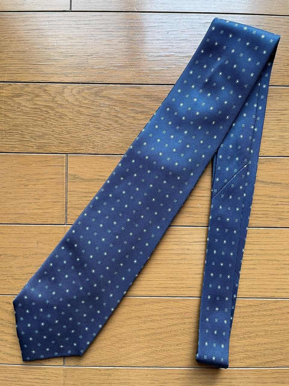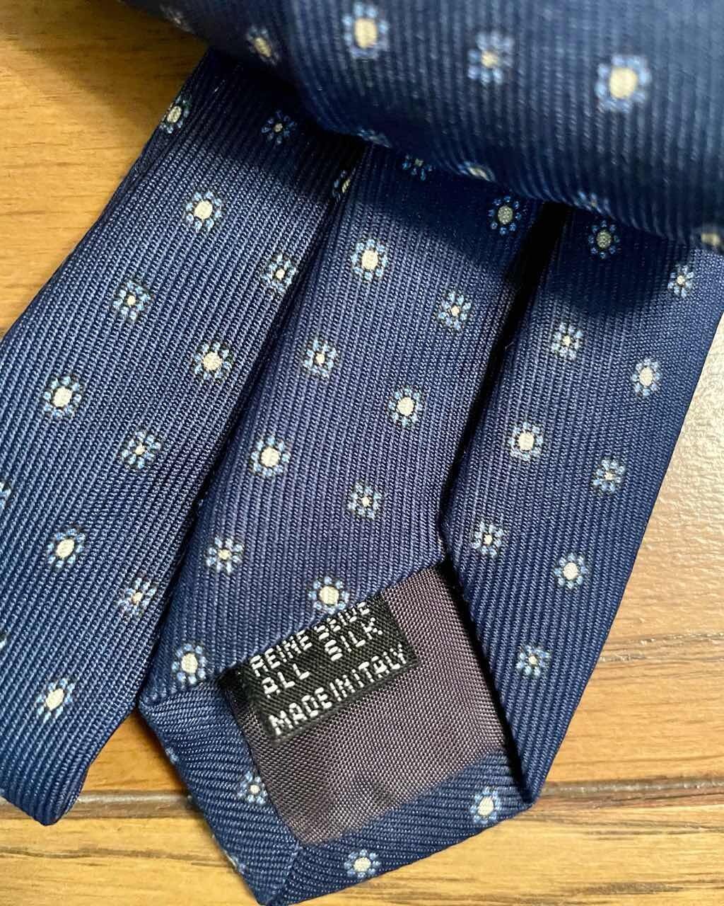 【品番】NR-06 【状態】未使用品(タグなし) 【素材】シルク100% 【色】ネイビー小紋 【定価】21,780円 【商品説明】 ローマのコンドッティ通りとコルソ通りが出会うあたりに小さな店舗を構えていたメローラ。ローマ紳士御用達の名店として良質なネクタイとグローブを揃えていました。特に50オンスという地厚なシルク生地にプリントを施したネクタイはマリネッラに勝るとも劣らない逸品として有名です。