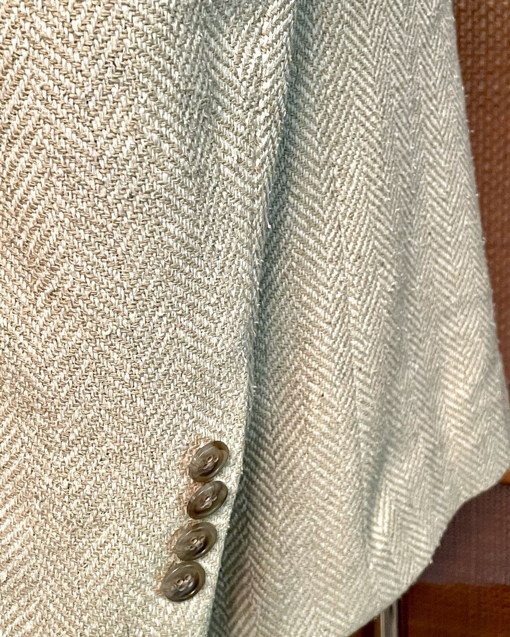 90年代のポロラルフローレン定番、アイボリーのシルクヘリンボーンジャケットの紹介です。毎シーズン作り続けていた定番のシルクジャケットはラルフローレンが描く英国貴族的な装いに欠かせないもの、ノーベントのバックスタイルや胴絞りの強いシルエットなどグレートギャツビーの世界をイメージさせます。白のコットンパンツに茶白のコンビシューズを合わせて思い切りお洒落なアイテムでまとめたコーディネートが似合うジャケットです。