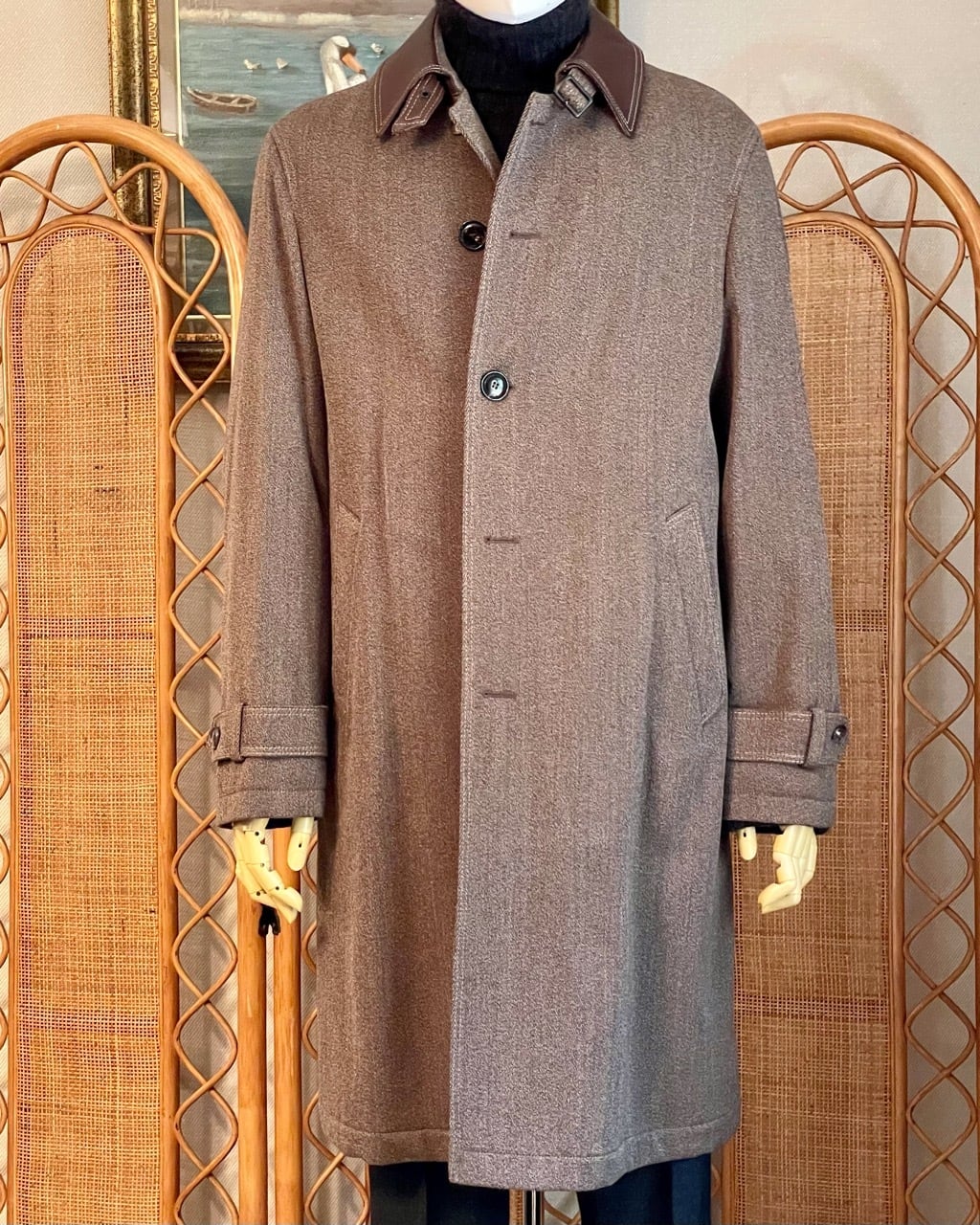 【品番】21OCT-02 【状態】新品 【素材】ローデンクロス 【サイズ】38R 【色】茶 【デザイン】ステンカラーローデンコート 【製造国】オーストリア 【実測値】 身幅56/肩幅45/着丈109/袖丈64(㎝) 【商品説明】 ローデンクロスを用いたオーストリア製のステンカラーコートの紹介です。ブランドはポールスチュアート、襟や内ポケットの縁にレザーをあしらったお洒落な一着です。購入から20年近く経ちますが未使用のため傷やシミなどもなく安心してご愛用いただけます。