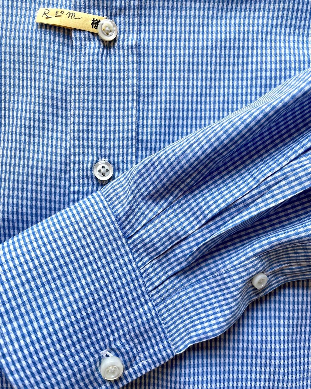 名シャツの誉れも高いアンナマトッツォの紹介です。ジャケットやスーツに合うブルーのドレスシャツはマトッツォならではの厳選素材を使用、独特の織柄が高級感を醸し出します。しなやかな生地を生かすべく袖付けや襟付け、ボタンホールなど随所に手仕事を加えながらも台襟を硬めにしてスーツやジャケットの下で凛として見えるよう工夫されています。シャツとしては異例の価格ですが着るとその価値に納得するだけの魅力をもっています。