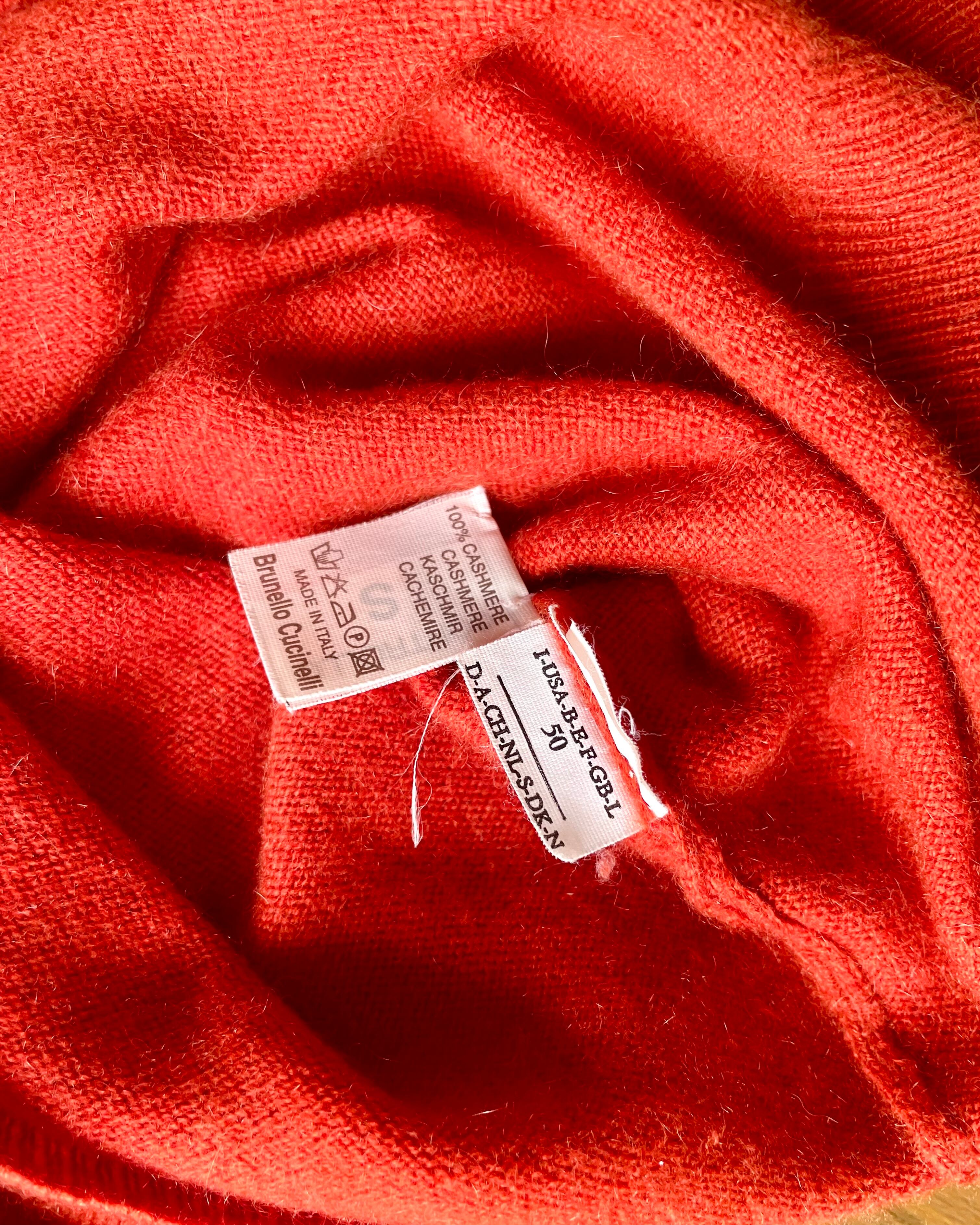 ニットの雄ブルネロクチネリのポロカラーニットの紹介です。コモ湖畔にあるセレクトショップ別注のカシミアニットはイタリア人の大好きなテラコッタ色、秋冬カラーとしても毎年人気の色です。まだブルネロクチネリが発色の良いカシミア製品で台頭し始めた頃の商品ですが、シャツの上に羽織ってもジャケットの中にインナーとして着ても装いを格上げしてくれるクチネリのニットは軽く暖かく一枚で何通りも着こなせる一着といえます。