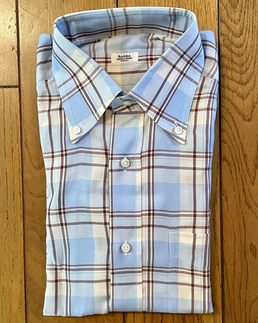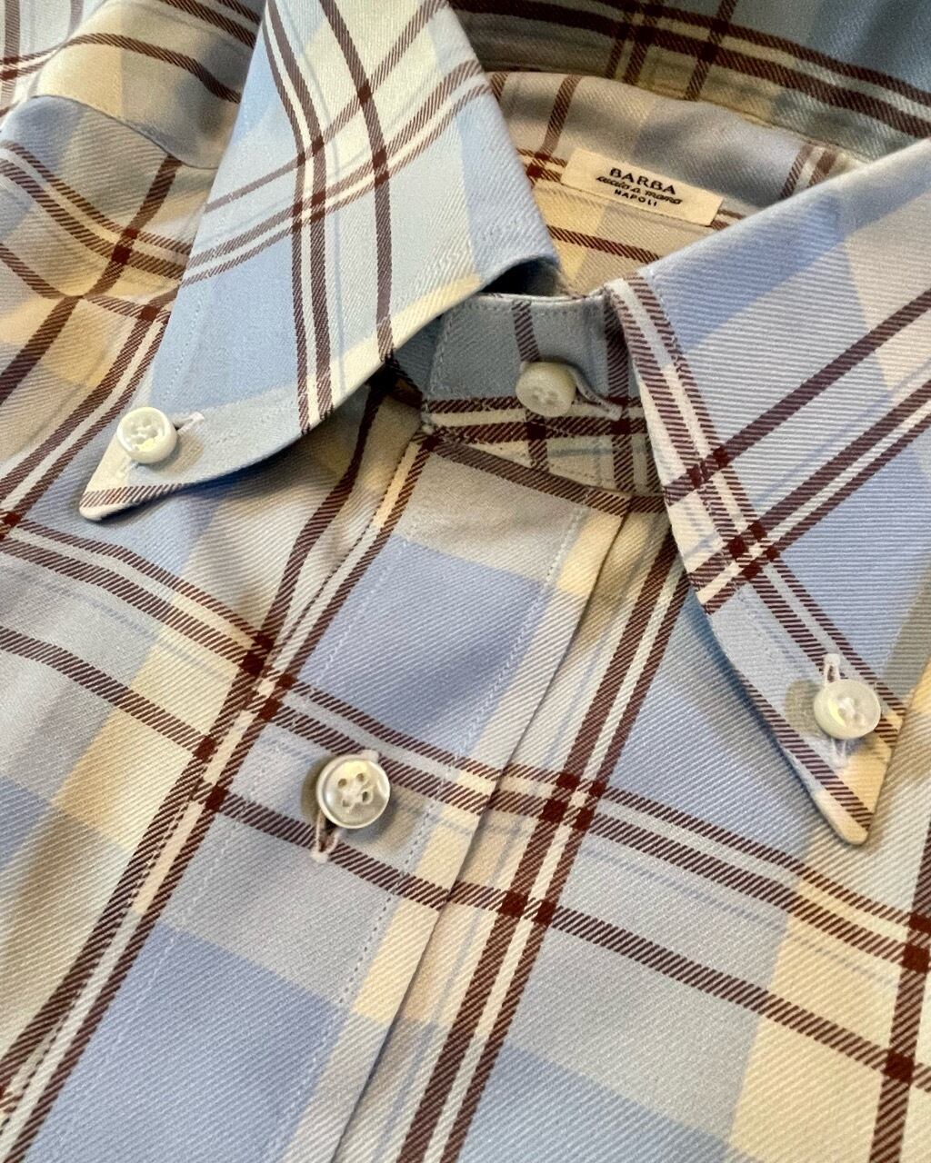 ルイジボレッリの後を追うように現れたナポリのバルバ。黒タグは袖付けのみハンド、そして金タグは手仕事による襟付けや袖付け、前立てや手縫いのボタンホールなどボレッリ同様のクオリティと二段構えのラインナップが特徴です。こちらは黒タグながらアズーロエマローネとイタリアの洒落者に欠かせない色合わの生地を使用しています。