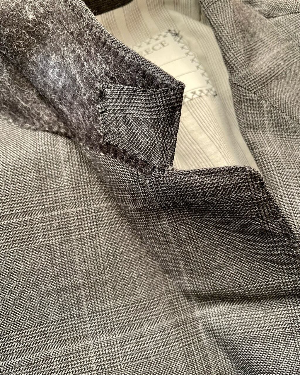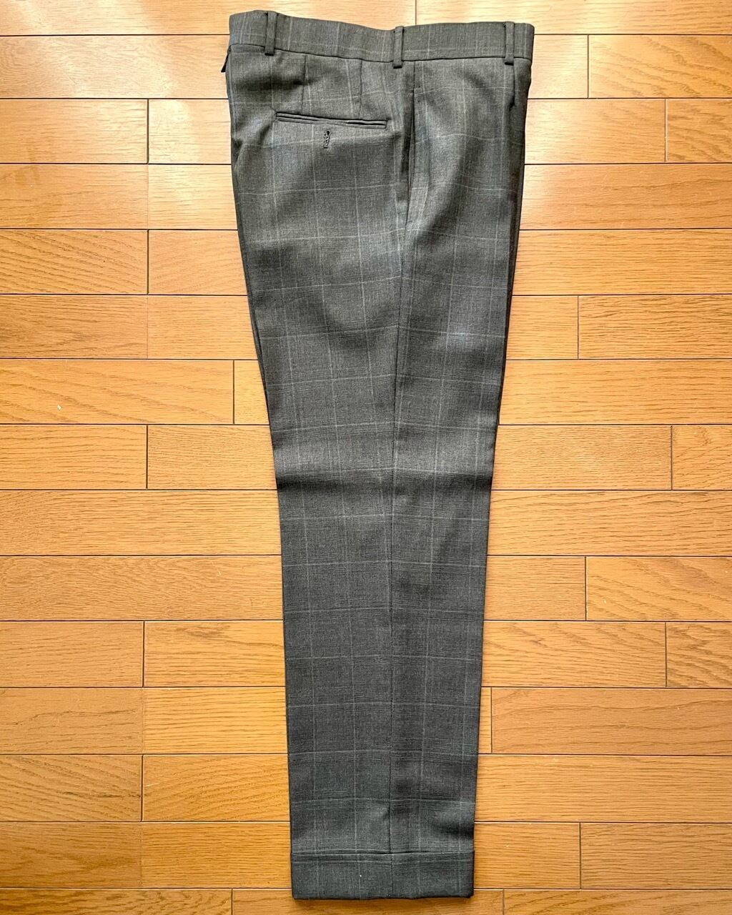 アメリカントラッドの雄ブルックスブラザーズがデザイナーのトムブラウンを迎えて打ち出したブラックフリースからスーツの紹介です。こちらは自社工場のサウスウィック製、切羽やラペル裏の髭などテイラードに近い仕様になっています。通常袖ボタンは2つのところJプレス風に3つボタンに変更、本切羽の本開きにするなどカスタマイズされています。既にブラックフリースは終了、サウスウィックも閉鎖されブルックスも経営が変わりこの時代のものは望むべくもない状況です。