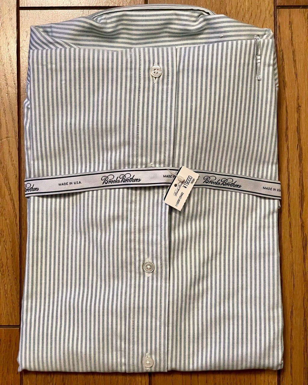 2020年に経営破綻となり、再建したブルックスブラザーズは既に自社工場のガーランドシャツメーカーを閉鎖しているため、ボタンダウンシャツをベトナム製に切り替えました。破綻前のアメリカ工場縫製のBD(ボタンダウンシャツ)の在庫はほとんどなくなりましたが、NOS(ニューオールドストック)としてミラノフィットの15-33を用意しております。