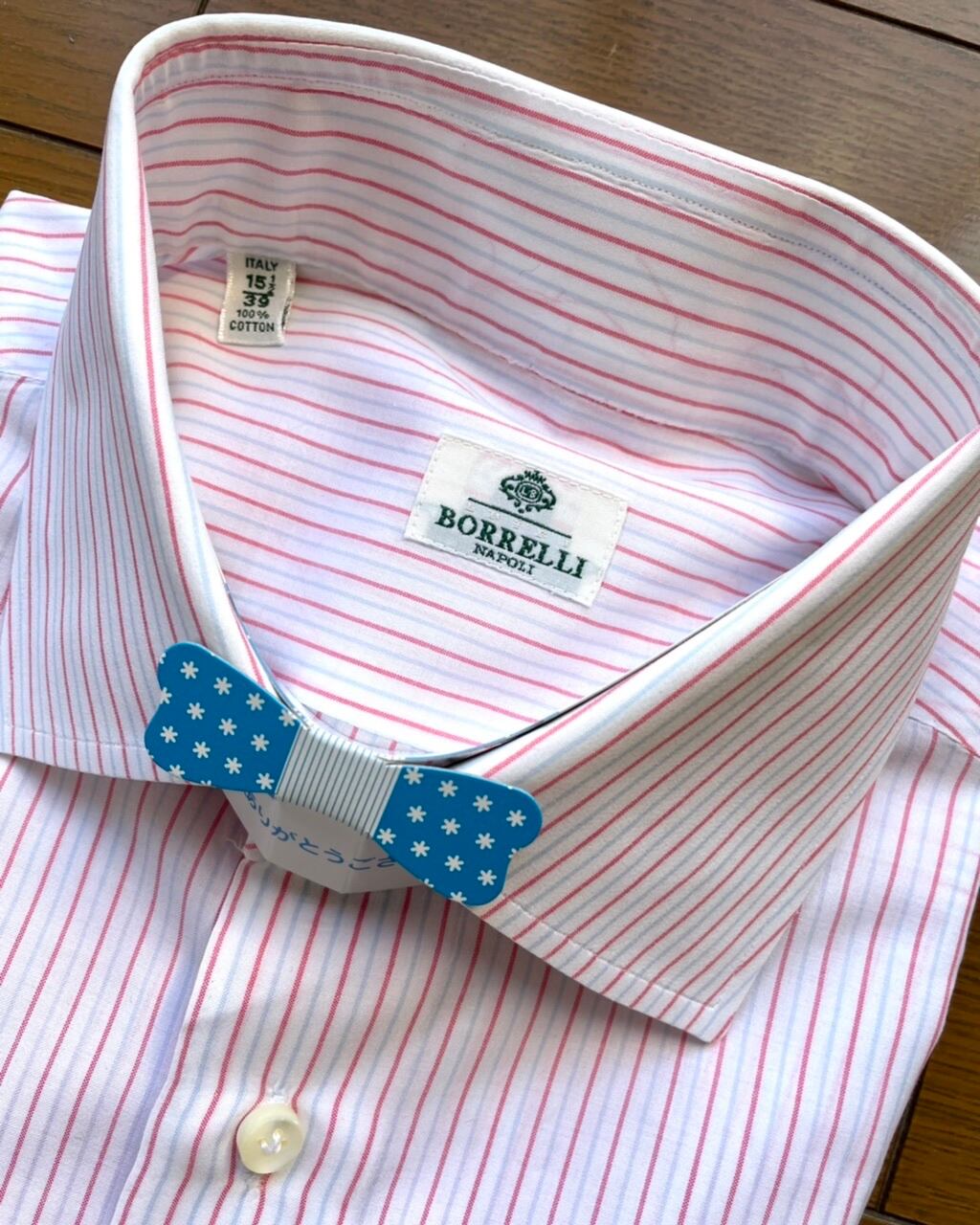 ナポリのルイジボレッリからオルタネートストライプのカッタウェイカラーシャツの紹介です。手仕事による襟付けや袖付け、前立てや手縫いのボタンホールなど凝ったディテールはお馴染み。赤系統でも青系統でも合わせられるオルタネートストライプがスーツやジャケットのVゾーンをバラエティ豊かにしてくれます。
