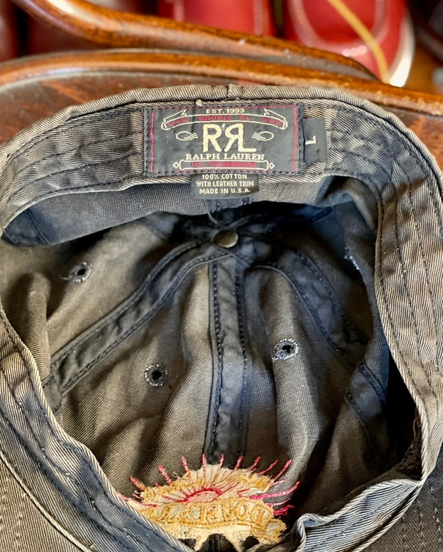 第1期のRRLからトラッカーキャップの紹介です。第2期は全て中国製になりましたが、1993年〜1998年までの第1期RRLではアメリカ製のトラッカーキャップが存在していました。こちらはそのアメリカ製、ライジングサンとDOUBLE RLの文字がクラウンに刺繍されるなどとても凝った作りです。
