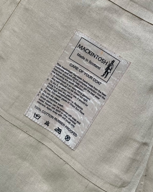 大変珍しいポロラルフローレンとマッキントッシュのダブルネーム。製造はもちろんスコットランド製ですがマッキントッシュオリジナルにはないチェンジポケット付きのデザインやタッターソールの裏地などラルフローレンならではのこだわりが満載です。マッキントッシュ特有の経年変化によるポンディング剤の溶け出しが両袖に見られますので、綺麗に落とすには専門のクリーニング店によるケアが必要です。80〜90年代ラルアイテムのコレクターやオールドラルフ好きな方におすすめです。