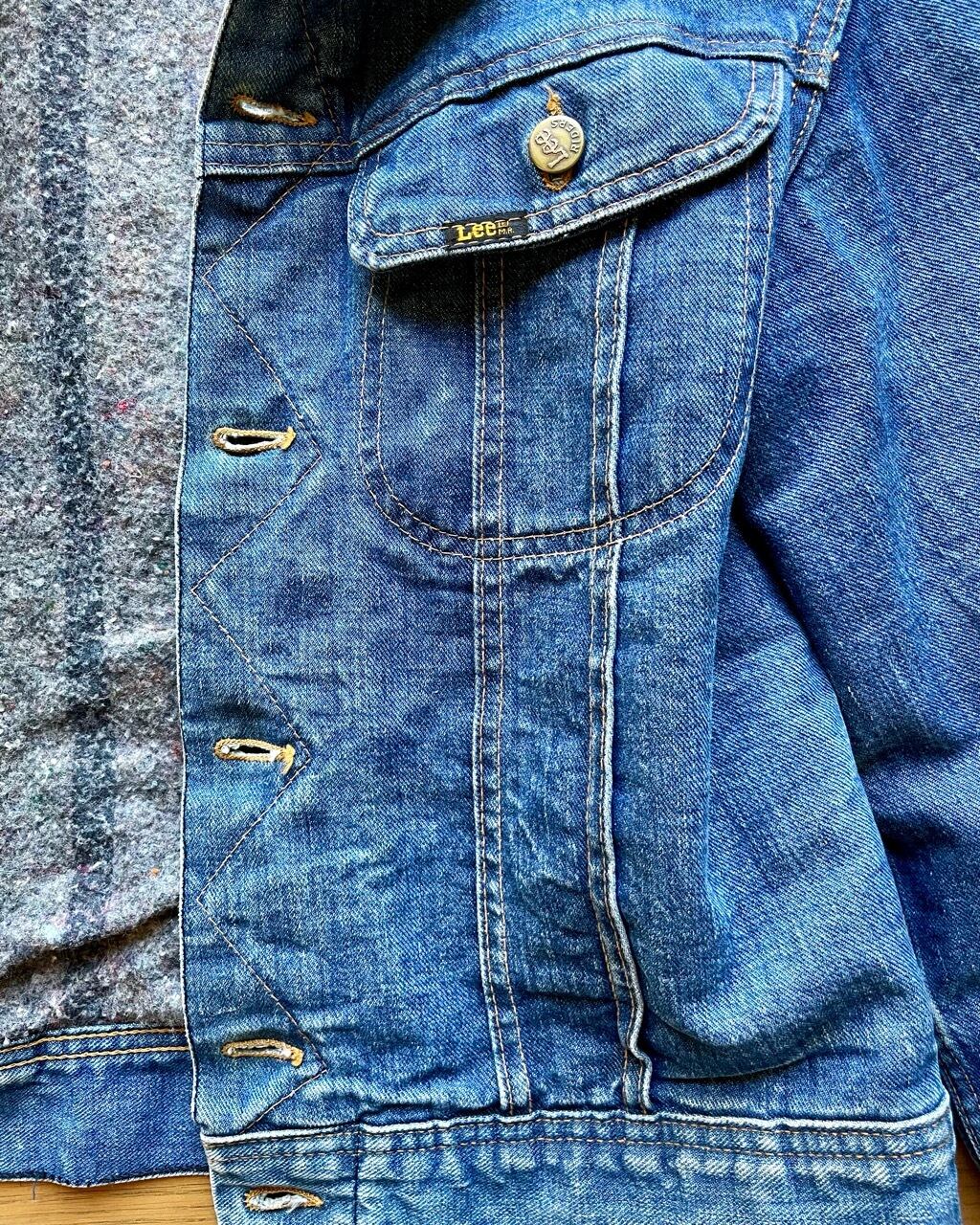 1976年以降、プリントタグ変更後のLee 220LJの紹介です。それまでのLee 101LJから品番が変更されましたが外観は変わらず。ただ刺繍タグ時代の横縞ライニングは縦縞に変更されています。この後両脇にハンドウォーマー(斜めポケット)が付くようになり品番も221LJへと変更、一大モデルチェンジが入りました。袖口は綻びが一切なく、両脇のアジャスターボタンも欠品なく4つ装備、コーデュロイの襟に僅かなシミがありますが(6枚目参照)、色落ちは程よく、今後も長く愛用できるコンディションとなっています。極め付けが右ポケット内にあった切符。ウィスコンシン大学マディソン校の大学内に設けられたシアターの2ドルチケットと判明。番号から79年に初代オーナー(おそらく)がこのジャケットを着て映画館を訪れたものと推定されます。なんとも浪漫を感じさせるビンテージウェアです。