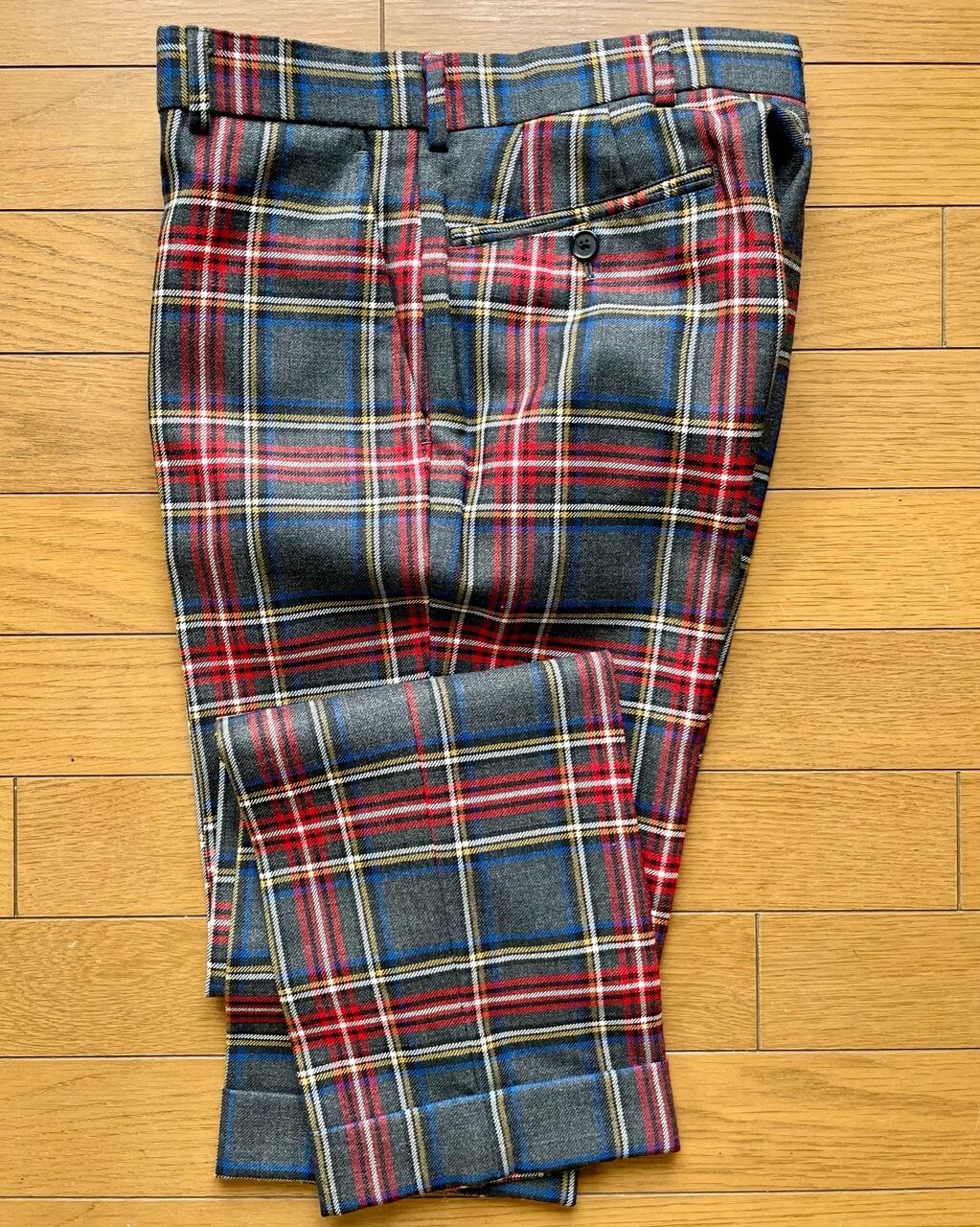 【品番】24MAY-17 【状態】ユーズド 【素材】ブルックスタータン ウール 【表記サイズ】W31/L32(股下は直し済み) 【実測値】胴囲82/股下72/カフ4.5(㎝) 【商品説明】 ブルックスブラザーズのカジュアルブランド、レットフリースからグレーベースのブルックスタータンウールパンツの紹介です。プレーンフロントに細身のシルエットはブレザーと合わせてドレス寄りに履いてよしカシミアセーターと合わせてカジュアルに履いて良しの優れものです。